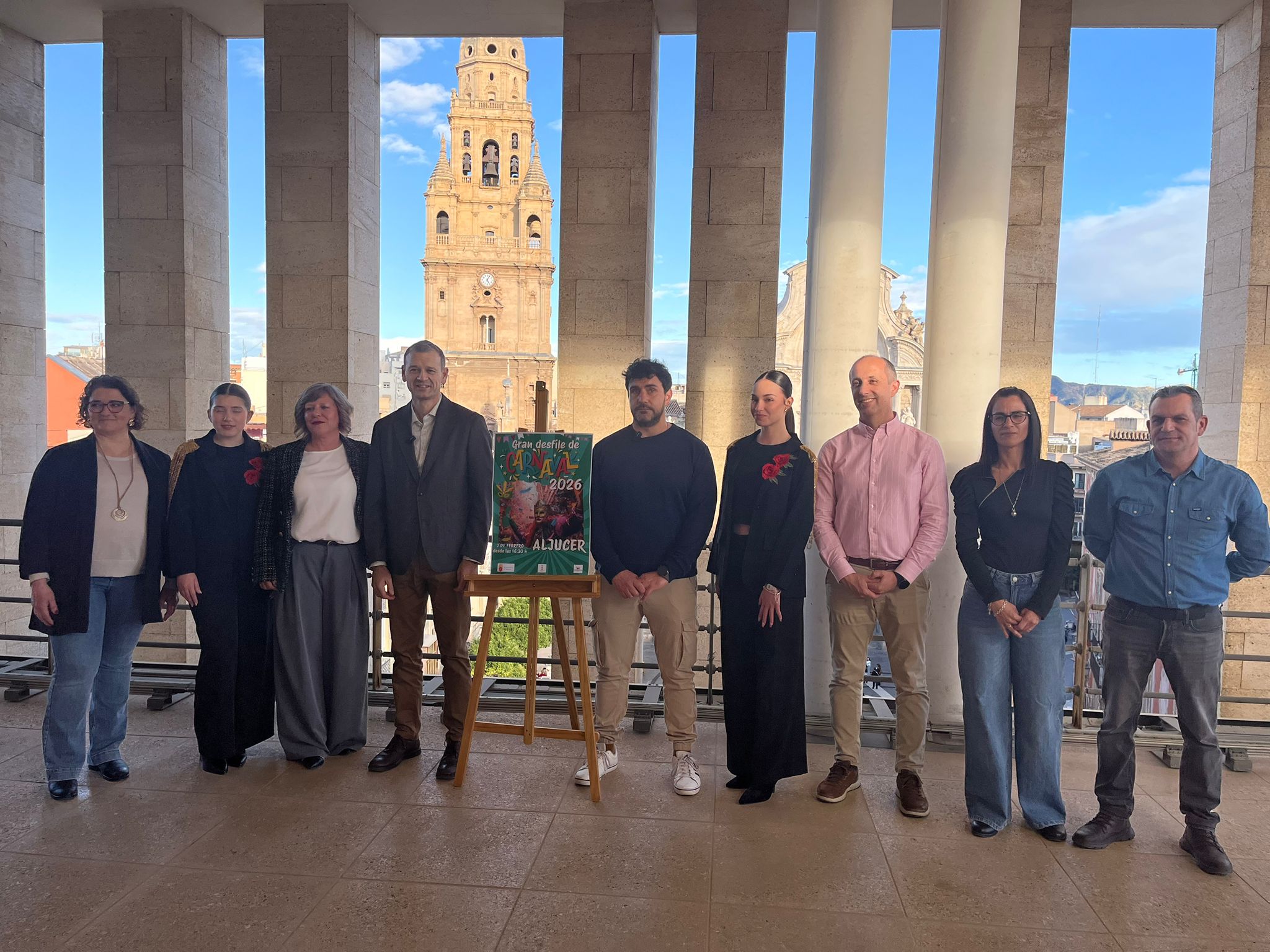 El concejal de Pedanías y Vertebración Territorial, Marco Antonio Fernández, y el presidente de la Junta Municipal de Aljucer, José Gómez, acompañados por miembros de la comisión de fiestas han presentado el cartel de este desfile en el que van a participar más de 800 personas. Este pasacalle saldrá de la calle Mayor para recorrer las principales calles de la pedanía hasta la calle Iglesia, inundándolas de color, música y creatividad.