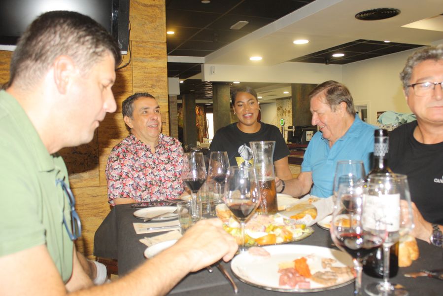 El menú, como siempre, fue obra de Pencho —el alma gastronómica del grupo— y Javi Gracia, anfitrión de honor. Comenzó con una empanada de hojaldre casera, seguida de un abanico de embutidos que sabía a tierra y tradición: sobrasada de chato murciano, tocino, longaniza seca, butifarra y chiquillo.