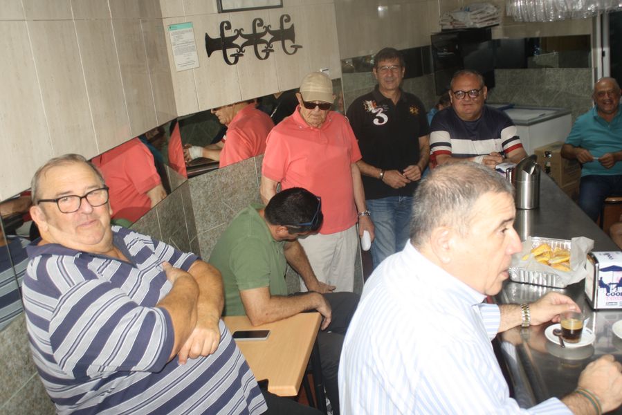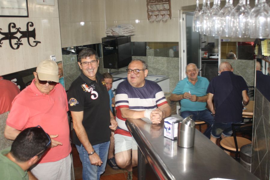 Porque el almuerzo nunca termina con el postre, la comitiva emprendió su peregrinaje habitual hasta el Bar Candi-Lejas, donde les esperaban las tortas de naranja de Pencho, recién hechas, jugosas, con ese toque casero que sabe a infancia. Allí, entre carajillos, risas y la participación en el sorteo de tres cupones —La Primitiva, El Gordo y Euromillones—, se cerró otra jornada perfecta.