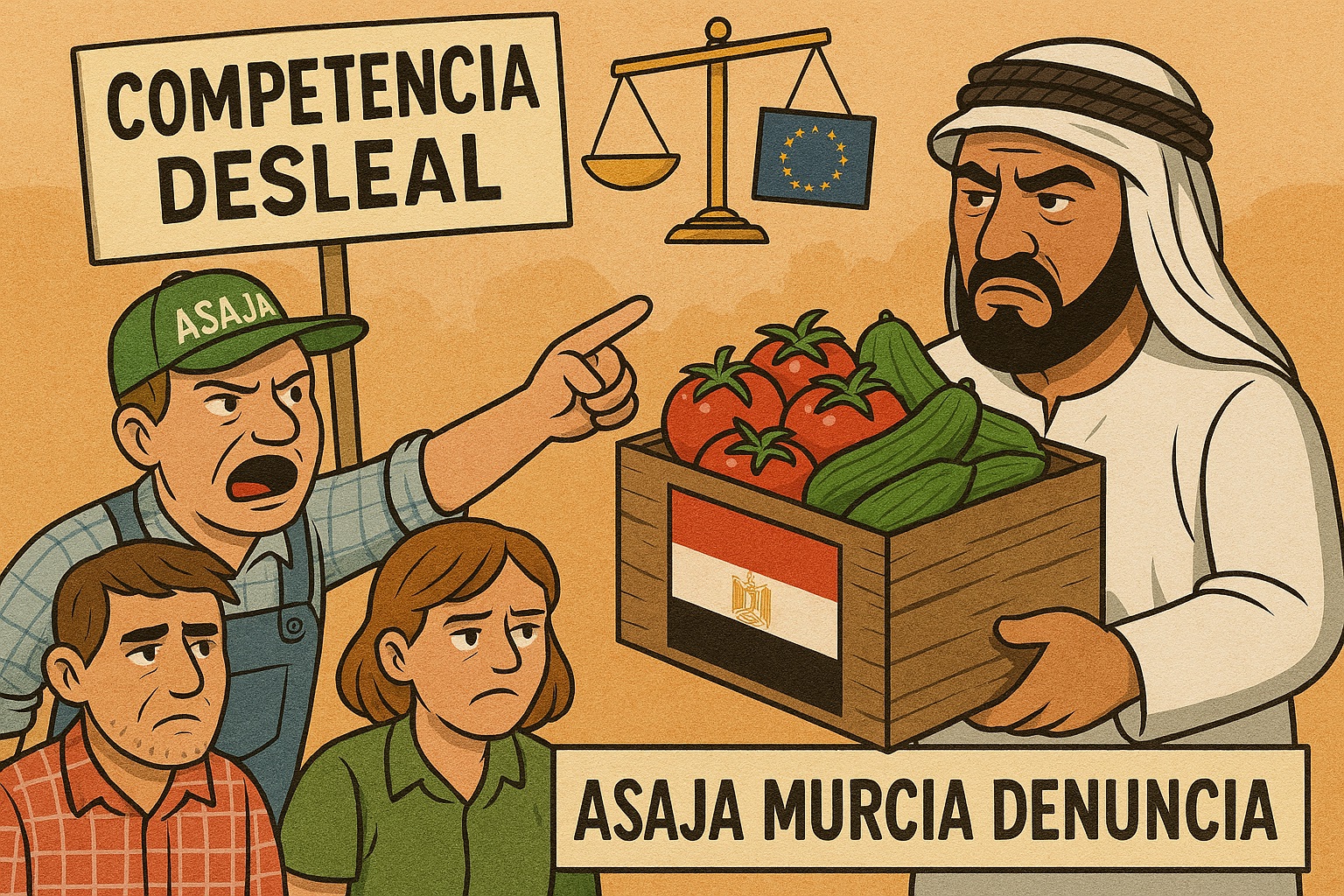 La organización profesional agraria ASAJA Murcia ha denunciado públicamente la situación de “competencia totalmente desleal” que, según afirma, ejercen las importaciones procedentes de Egipto en el mercado europeo de frutas y hortalizas, afectando de forma directa a la rentabilidad y viabilidad de las explotaciones agrícolas del sureste español.