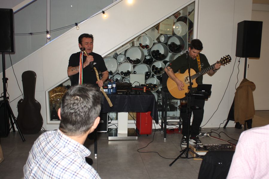 Mientras los platos se sucedían con ritmo pausado, sobre un escenario integrado en la sala, los músicos desgranaron un repertorio que viajó desde los primeros acordes de Ramiro hasta los versos desgarradores de Insurrección, pasando por Pájaros de barro, La canción de los oficios o El baile de los que sobran. No hubo silencios incómodos ni respetos protocolarios: desde el primer acorde, la sala se transformó en coro colectivo. Manos alzadas, palmas sincopadas y voces quebradas al entonar «no somos nada, no somos nadie» evidenciaron que, décadas después, las letras de Manolo García y El Último de la Fila siguen siendo bálsamo para heridas compartidas.