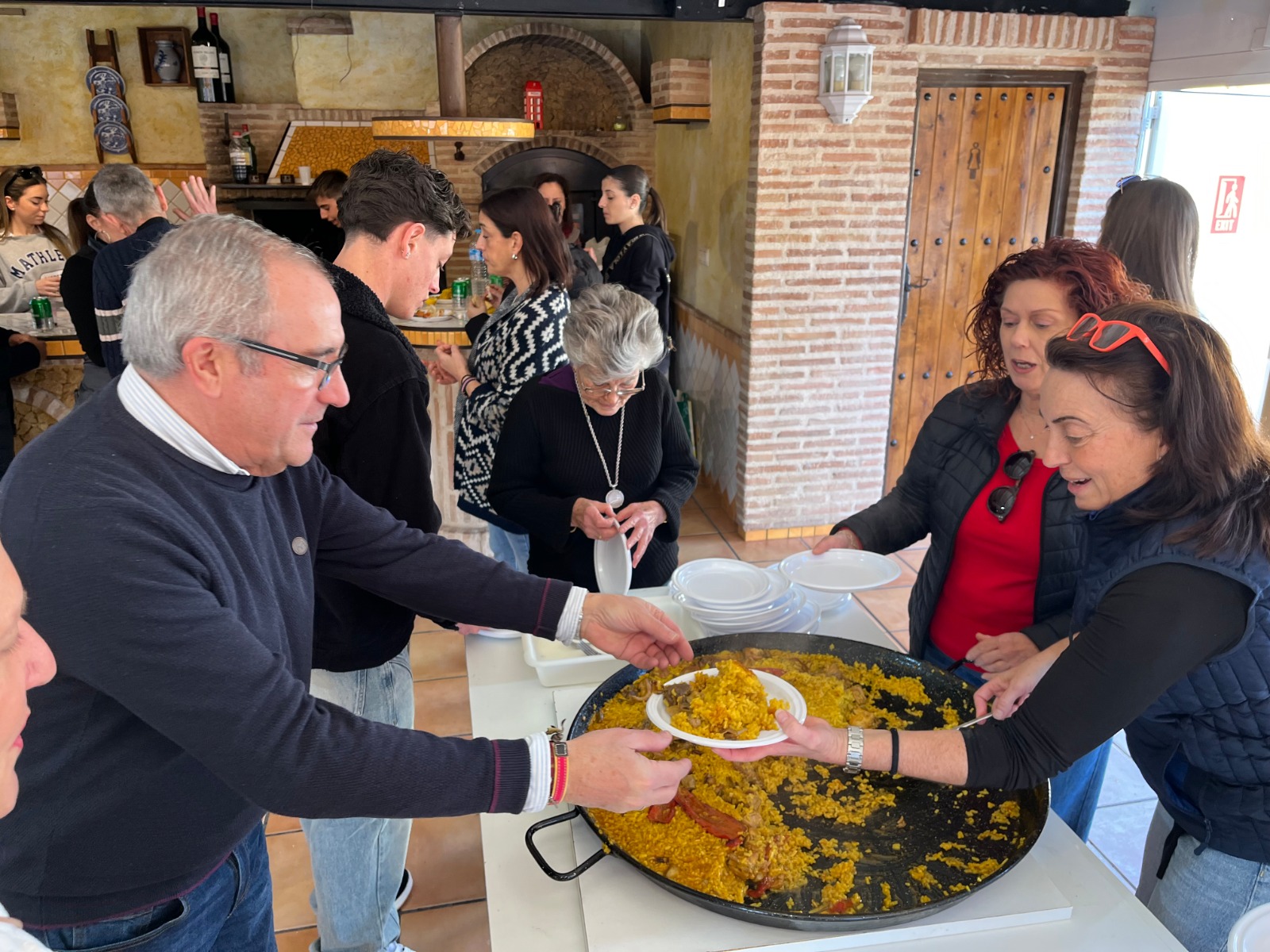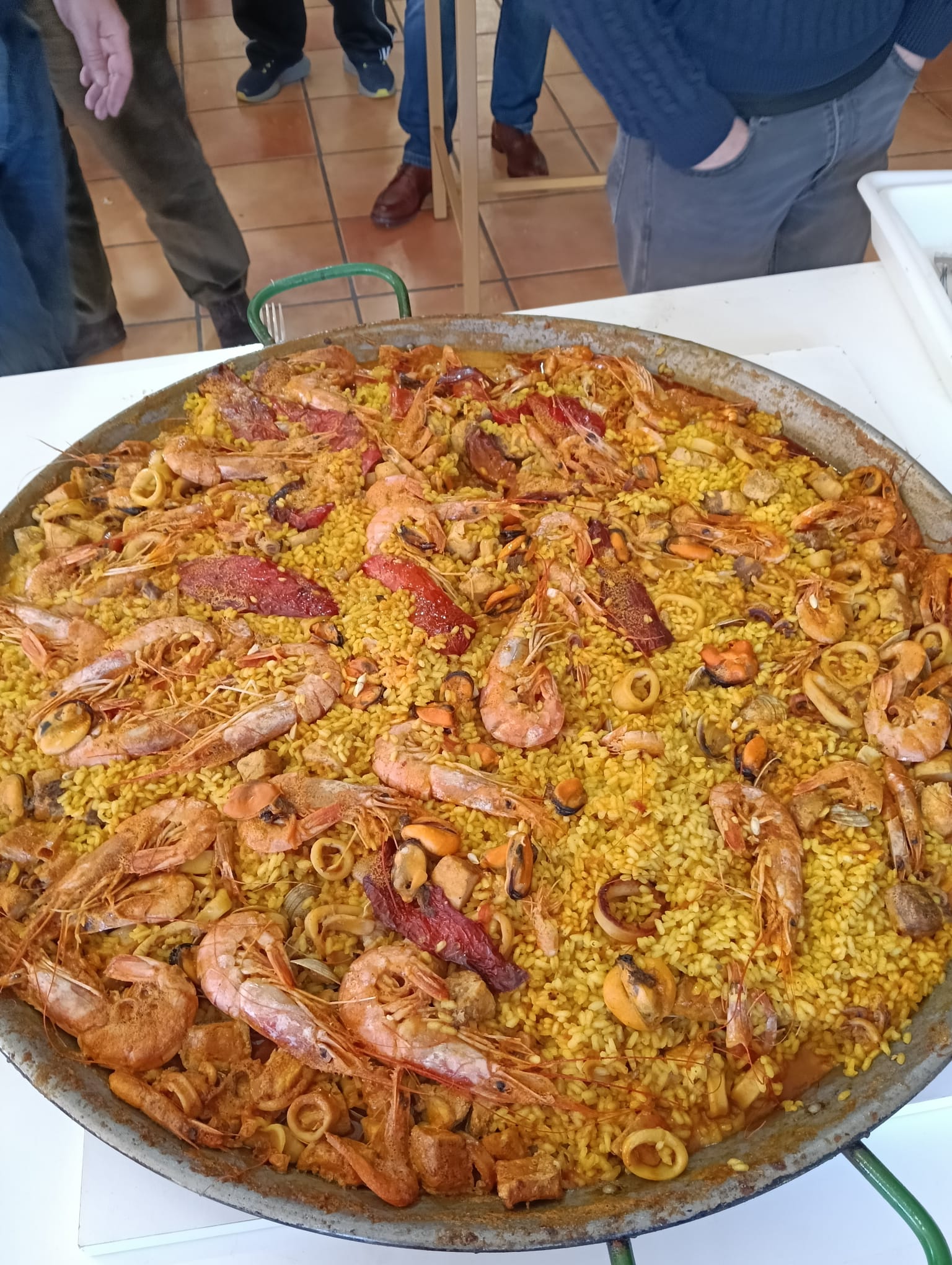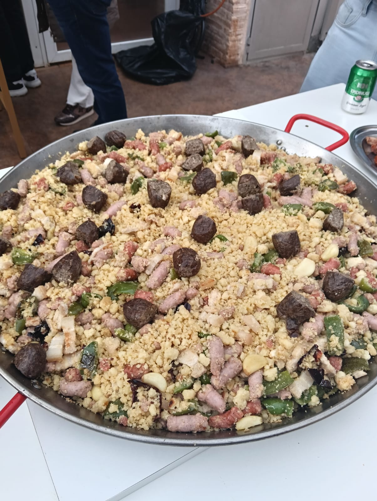 Las ensaladas frescas y el queso de la tierra prepararon el paladar para el clímax culinario: dos paellas humeantes —una de conejo cazado en los montes cercanos y otra de marisco traído del Mediterráneo— que los propios nazarenos elaboraron entre risas y consejos intergeneracionales.