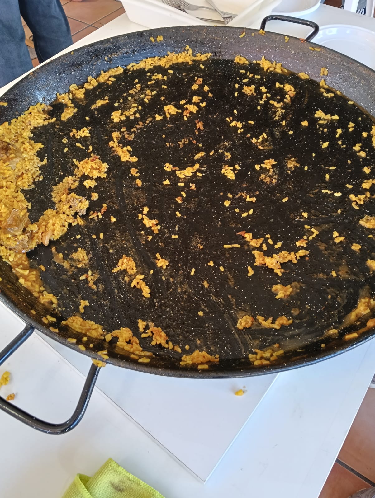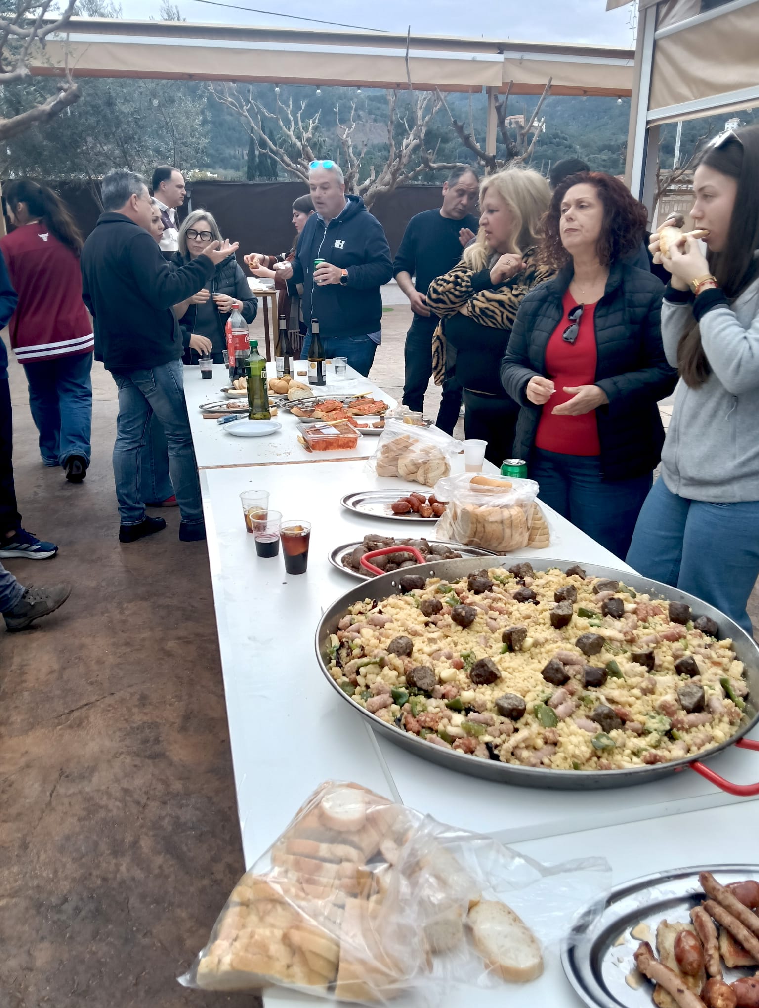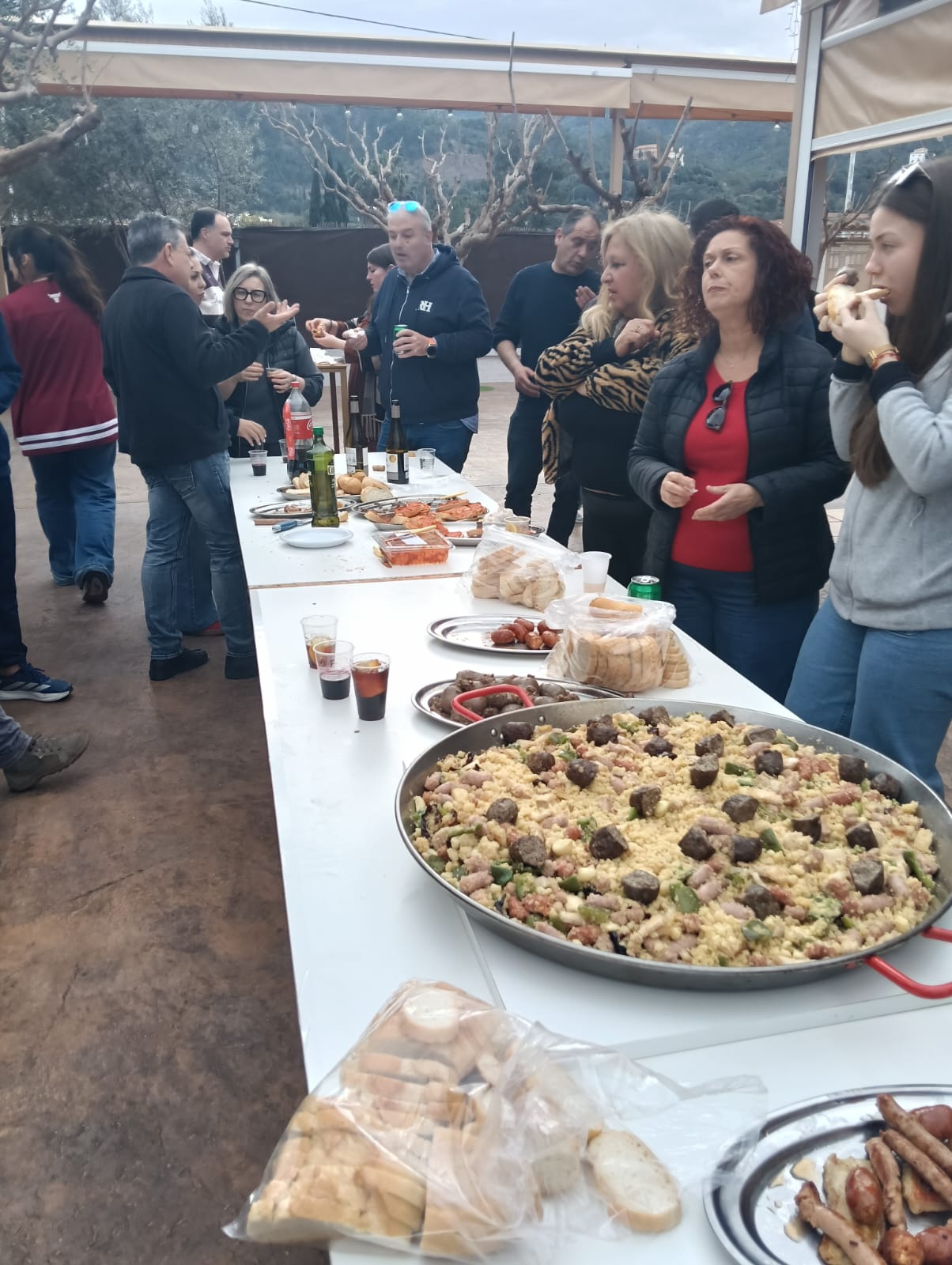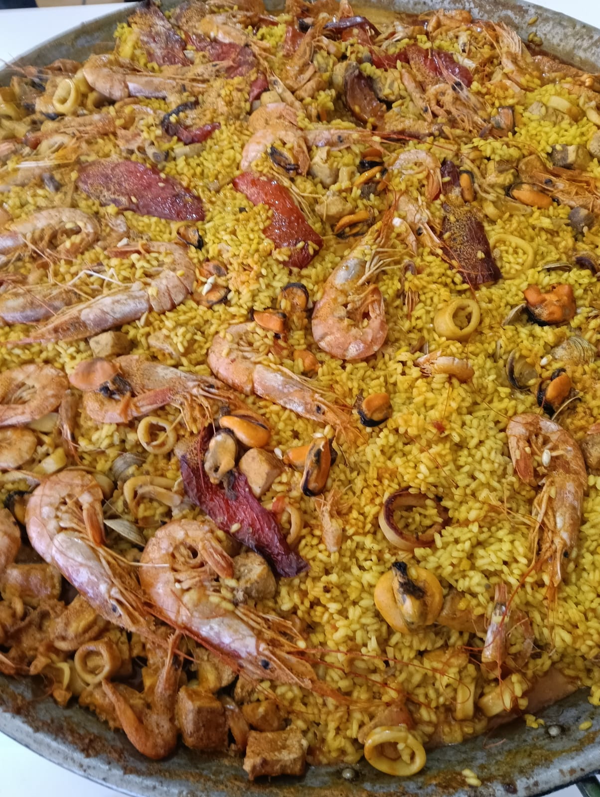 Las ensaladas frescas y el queso de la tierra prepararon el paladar para el clímax culinario: dos paellas humeantes —una de conejo cazado en los montes cercanos y otra de marisco traído del Mediterráneo— que los propios nazarenos elaboraron entre risas y consejos intergeneracionales.