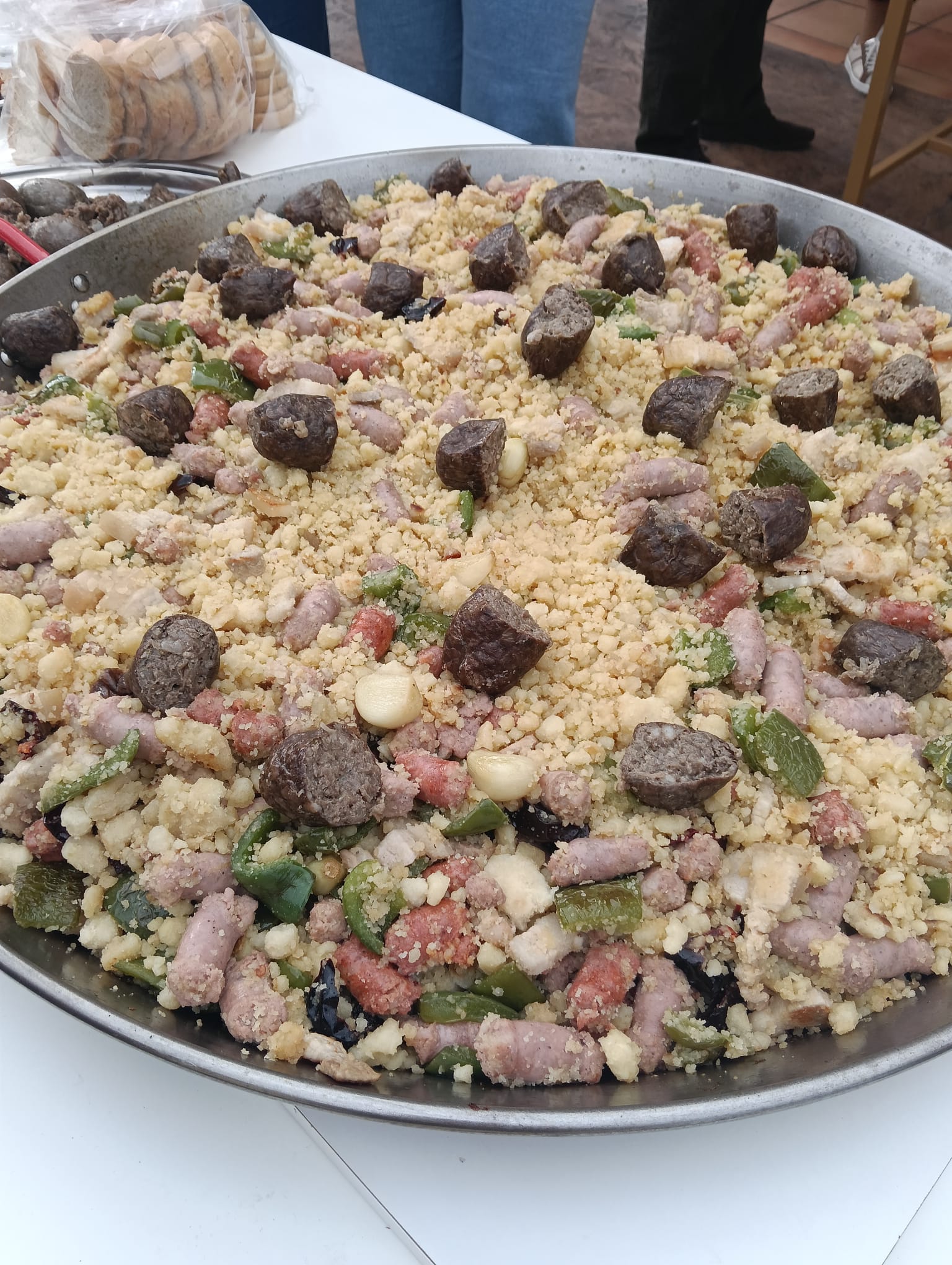 Desde las primeras horas de la mañana, la finca se transformó en cocina colectiva donde el ritual de la matanza —longanizas, morcillas, salchichas, tocino, pellejos y sobrasadas— dio paso a las migas caseras removidas en la sartén con el saber de quien entiende que el pan duro se convierte en oro cuando se comparte.