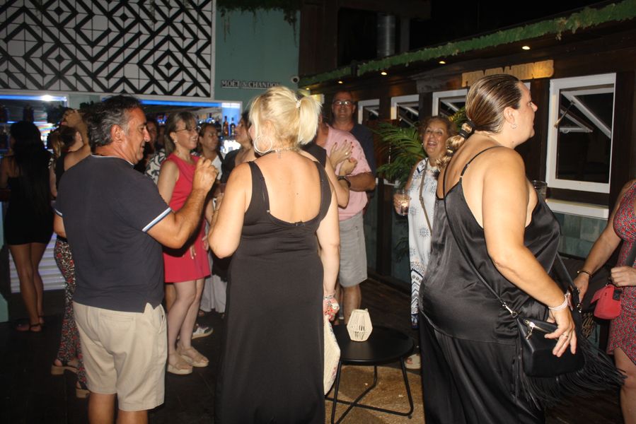 Desde las 19:30 horas y hasta bien entrada la madrugada —con cierre a las 2:00 h—, el primer piso del local, conocido como la Carabela de Colón, se transformó en una auténtica discoteca al aire libre, gracias al techo corredizo del local. Decorado como una réplica de la legendaria nave de Cristóbal Colón, el espacio fue el escenario perfecto para una fiesta que combinó vistas al Mar Menor, brisa marina y un repertorio musical imposible de ignorar.