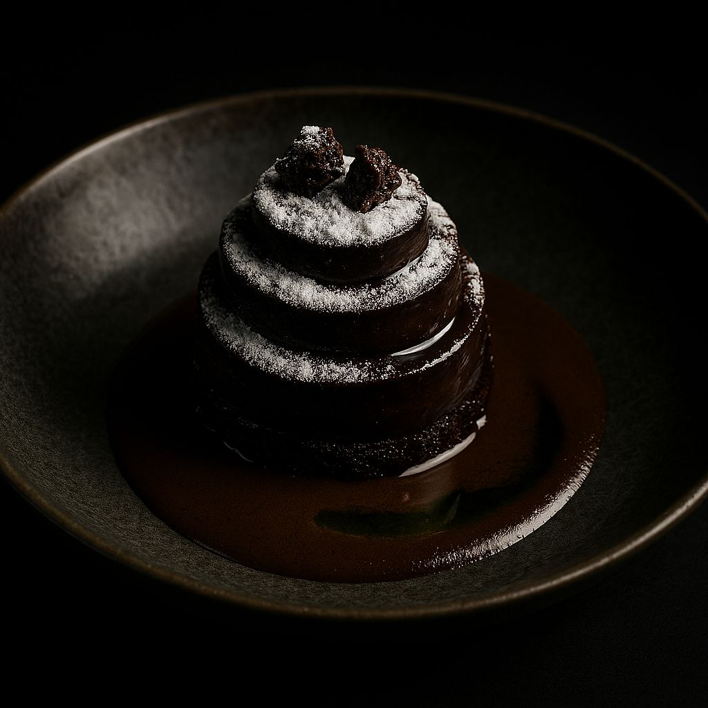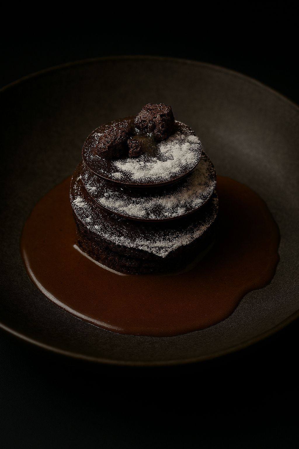 Y de postre, texturas de chocolate, sal Maldon y aceite de oliva virgen extra, un cierre intenso y sofisticado.