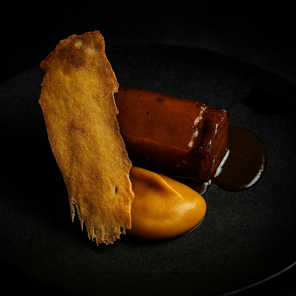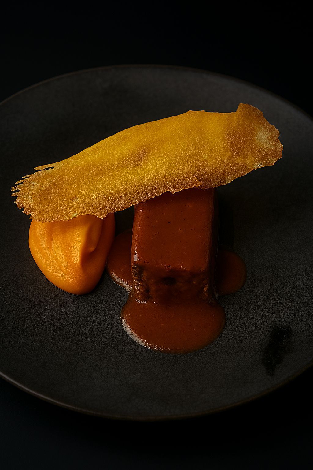 - Lingote de cordero ‘El Lechero’ a baja temperatura, demi-glace y parmentier de boniato.