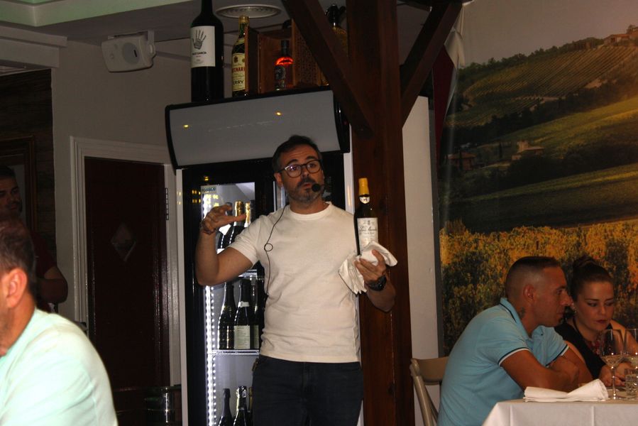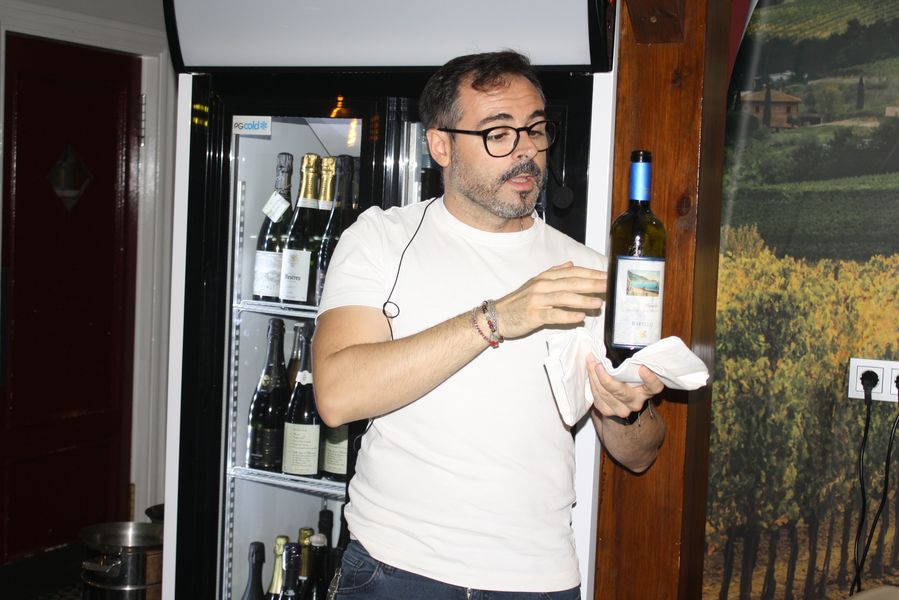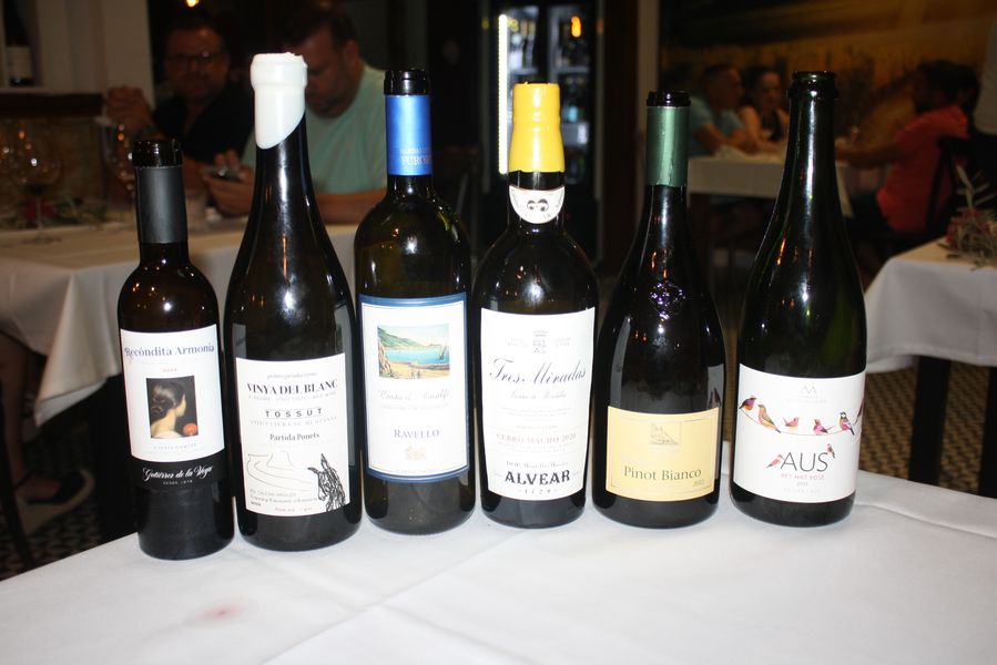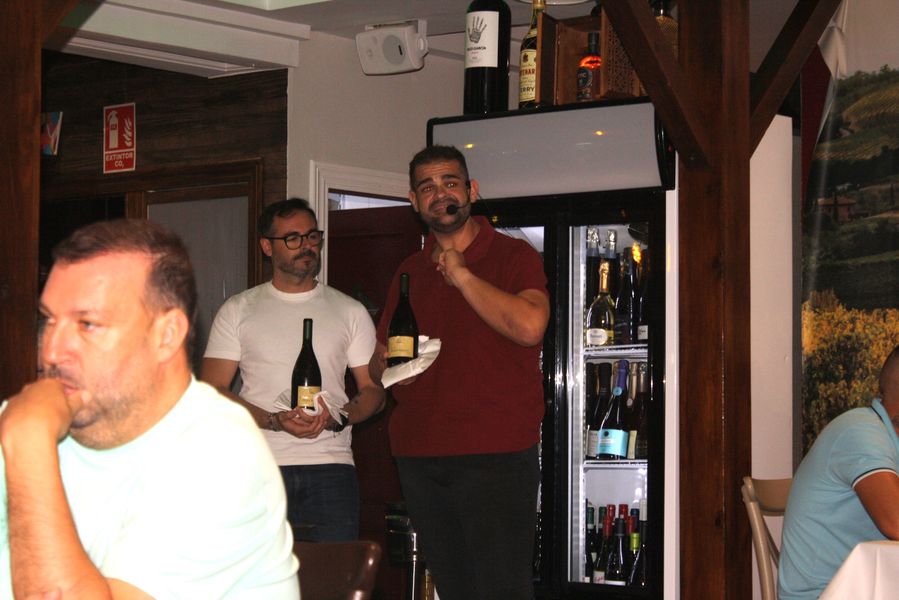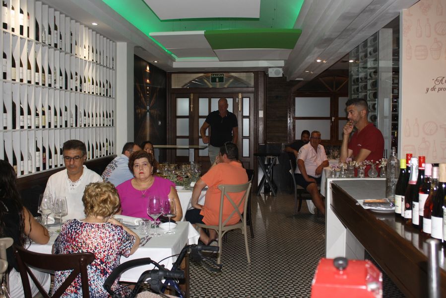 La velada, que se desarrolló en el interior del restaurante, estuvo envuelta en una atmósfera única, dominada por el vino como elemento central de la decoración: una pared con casi trescientas botellas y dos espectaculares cavas de vinos que rodean la barra, creando un escenario digno de un museo del vino.