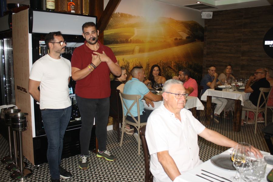 El pasado martes 26 de agosto, el restaurante Brutal Wine de Fuente Álamo se convirtió en un templo del sabor y el buen vivir. Con sus dos salones completamente llenos para más de 50 comensales, el local acogió una cena maridaje de lujo, protagonizada por dos de los sumilleres más reconocidos de la Región de Murcia: Eduardo García, del restaurante TR39, y Miguel Alcaraz, alma enológica del propio Brutal.