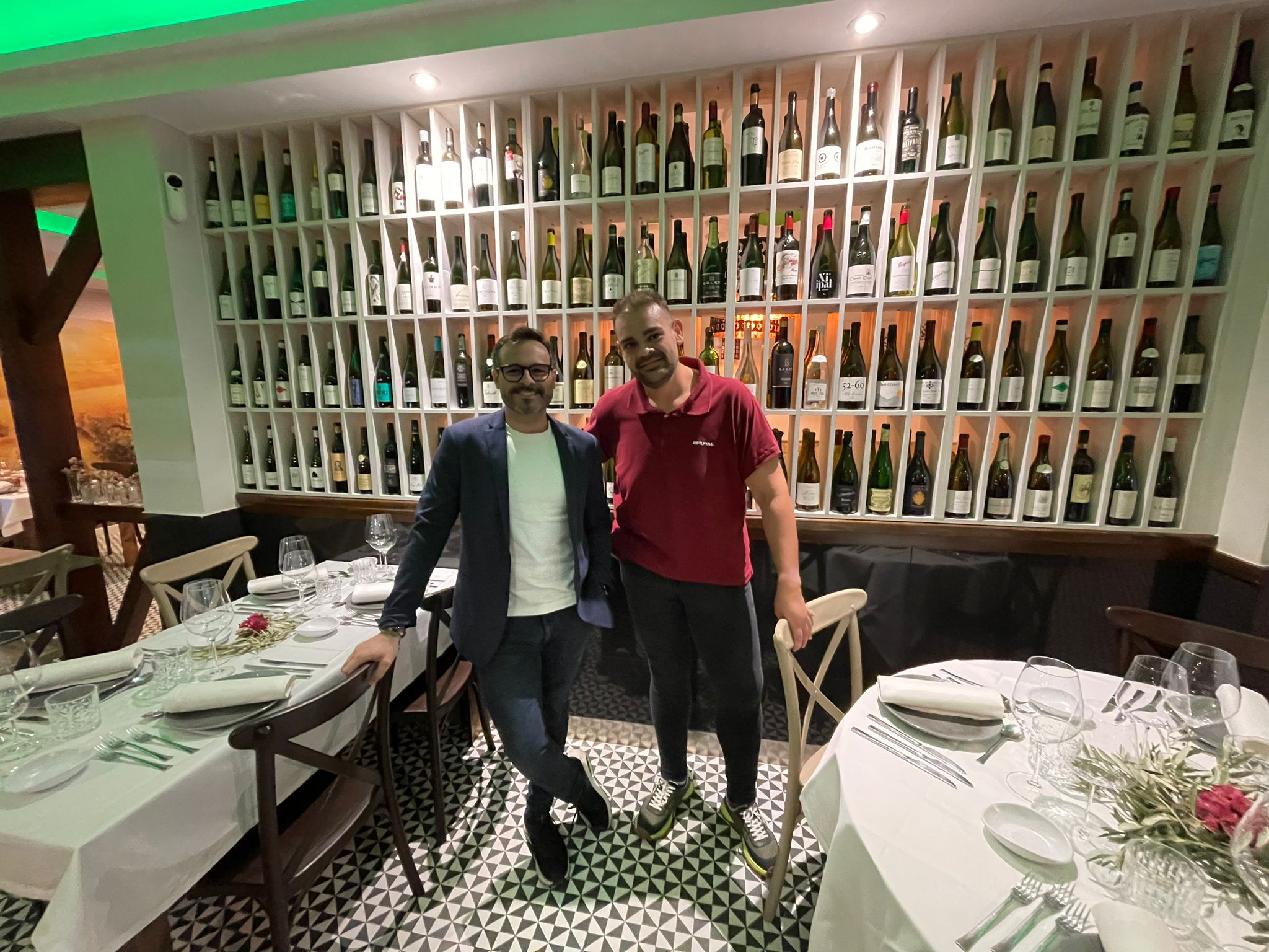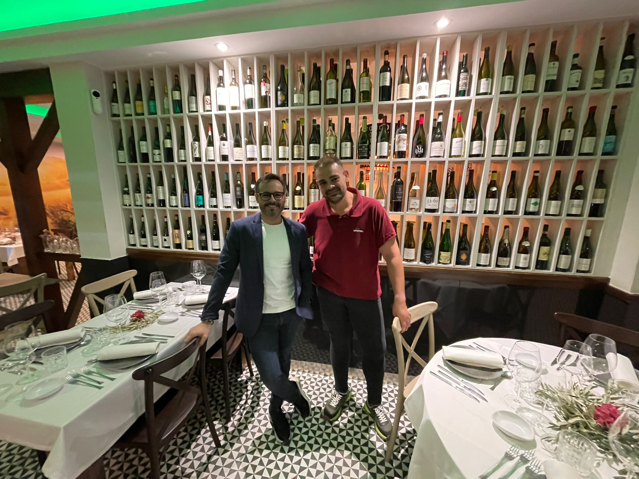 Eduardo García, uno de los sumilleres de la velada, compartió con los comensales su trayectoria: 20 años en la hostelería, desde camarero de barra hasta sumiller de referencia. Tras formarse en restaurantes de Madrid como Asador de la Esquina o Realcafé Bernabéu, pasó por Mercado de la Reina y AuraCafe, para finalmente centrarse en el mundo del vino en Pepe Tomás y Por Herencia, donde desarrolló cartas de hasta 350 referencias con enfoque en vinos de paisaje y del Mediterráneo.