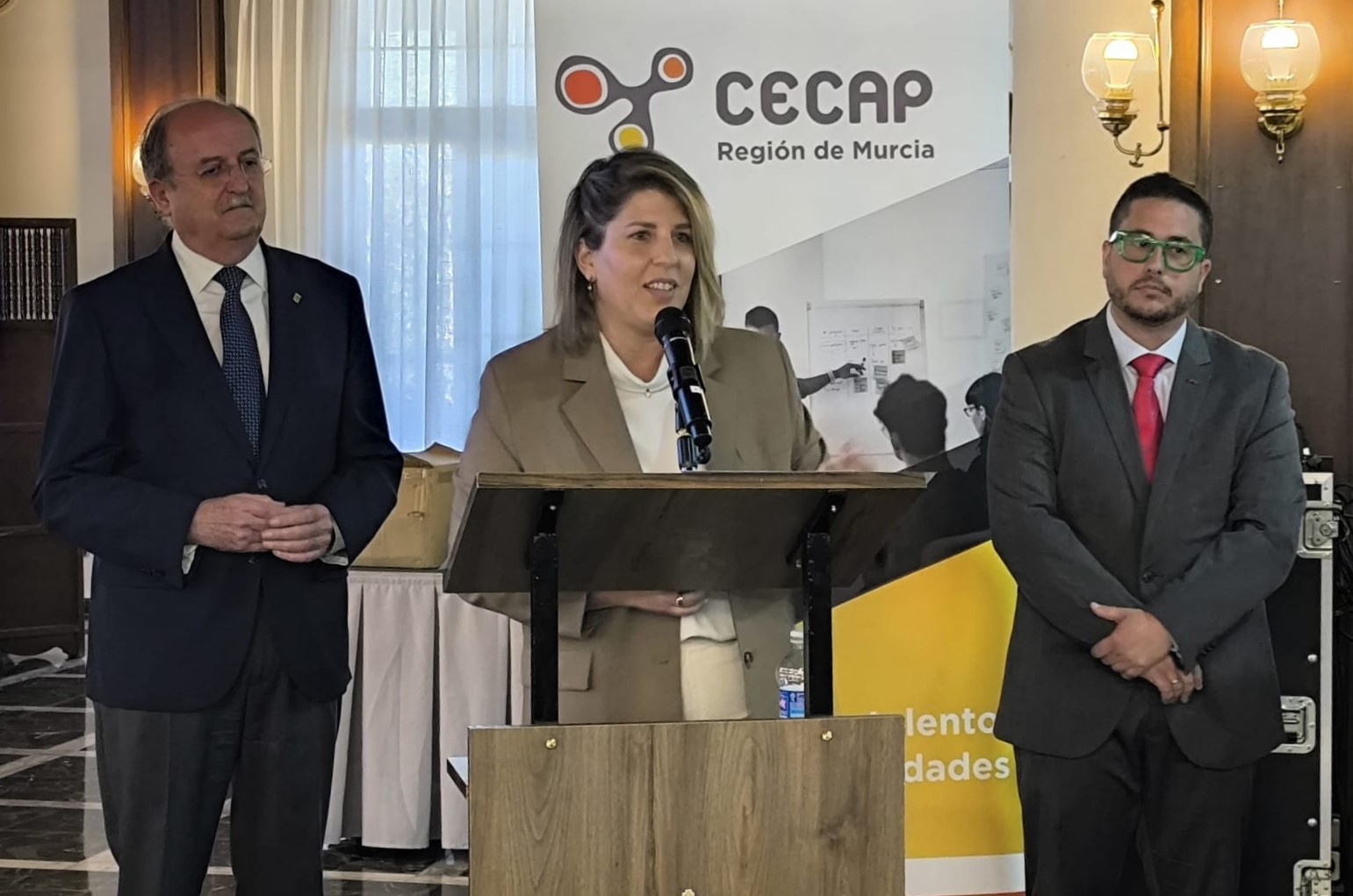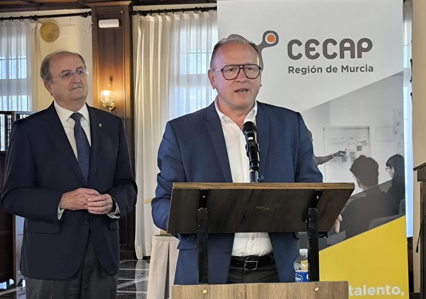 A continuación tomó la palabra el presidente de CECAP – Región de Murcia, José Luis Reverte, expresando «la importancia de esta asociación por ser nexo para unir fuerzas entre todas las empresas de formación de la Región. Debemos continuar avanzando hacia una formación más adaptable y más flexible a las necesidades actuales, para que la cualificación refuerce la competitividad de las empresas».