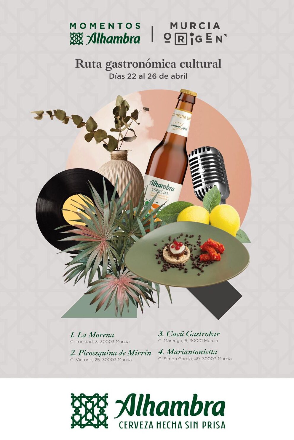 Cervezas Alhambra presenta una nueva cita de Murcia Origen con la ‘Ruta LUX’, un recorrido gastrocultural por el barrio de Santa Eulalia que invita a redescubrir la ciudad sin prisa. Del 22 al 26 de abril, el público podrá recorrer distintos enclaves del centro de Murcia degustando una tapa exclusiva, creada para la ocasión y maridada con La Mini de 1925 por un precio de 4€.