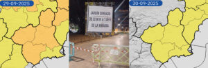 La Región de Murcia afronta este lunes 29 y la madrugada del martes 30 de septiembre una jornada meteorológica de alto riesgo, con avisos de nivel naranja y amarillo activados por la Agencia Estatal de Meteorología (AEMET) debido a la previsión de lluvias intensas y tormentas fuertes en prácticamente todo el territorio.
