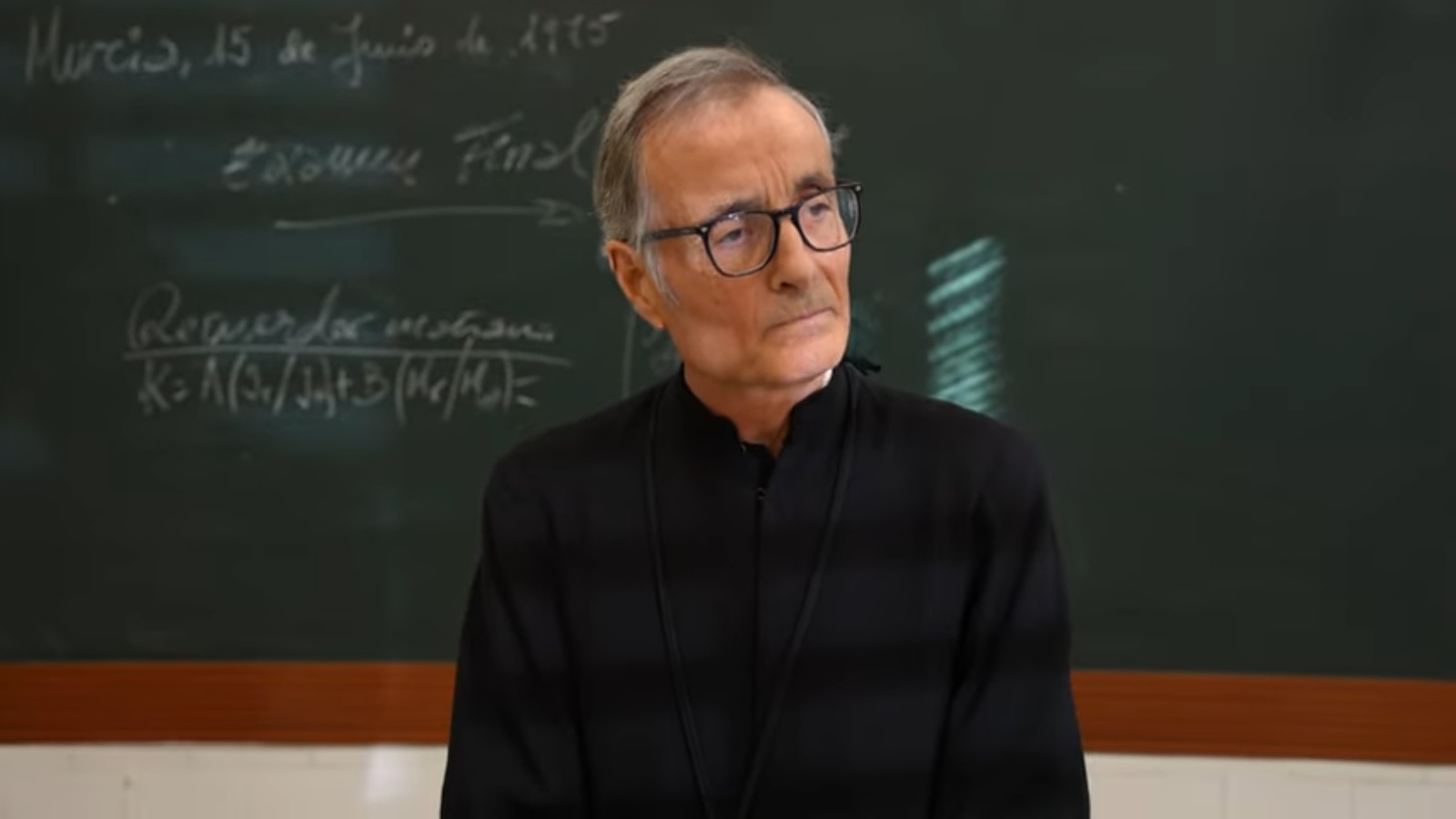 Tras el semifrío de turrón con helado —frío, cremoso, reconfortante—, el ambiente cambió. Las luces bajaron. En la pantalla, apareció el pórtico de La Merced. Y entonces, entró él: Salvador Serrano Zapater, antiguo alumno y actor, vestido con sotana, crucifijo y mirada serena, interpretando a un hermano marista que recibía a sus antiguos estudiantes con palabras de bienvenida, de gratitud, de fe.