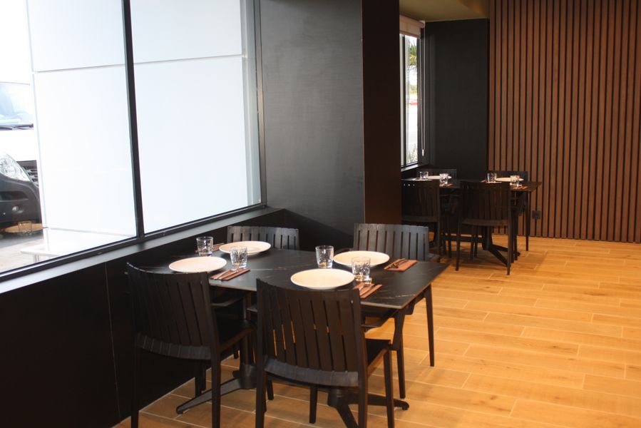 La visita de LasGastrocronicas.com reveló un espacio de 250 metros cuadrados donde la modernidad dialoga con la calidez: paredes negras, suelos de cerámica imitando la madera, que enmarcan el ritual culinario, un reservado con sillones de terciopelo gris para veinticinco comensales, y una elegante y amplísima terraza abierta al cielo con sombrillas blancas que invitan a detenerse cuando el asfalto arde.