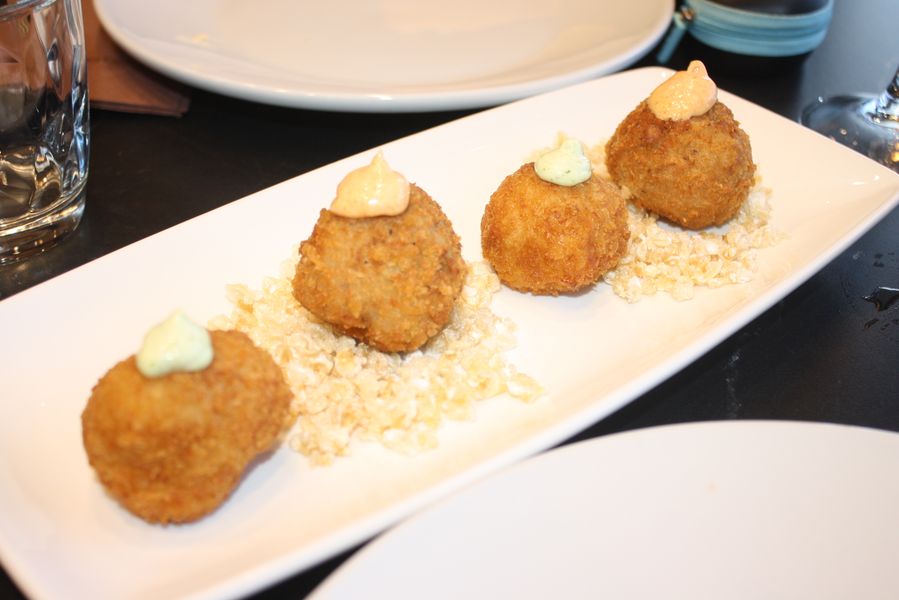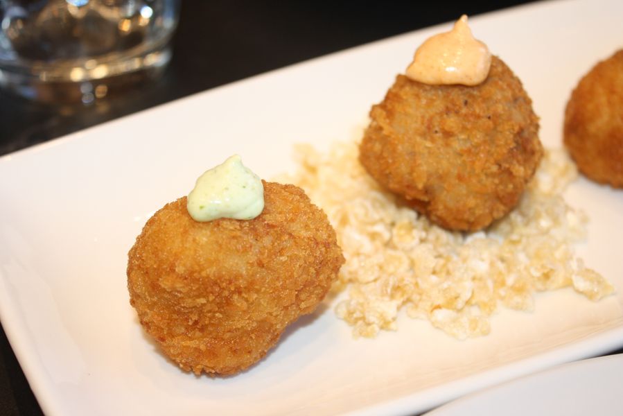 Aquella jornada, la barra se transformó en altar de pequeños milagros: marineras que evocaban el mar más cercano; croquetas de chuleta vieja coronadas con palomitas de torrezno que crujían como promesa de felicidad; y otras, de gamba roja, bañadas en emulsión verde que despertaba los sentidos.