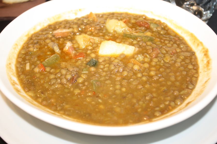 El puerro a la brasa, tiznado con delicadeza y acompañado de salsa romesco y sal negra, precedió al calamar nacional cuya piel crujiente escondía una ternura casi imposible. Ese día probamos embutidos de Orihuela —salchicha y longaniza con personalidad propia—, aunque los embutidos habituales del local son ibéricos, dieron paso a las lentejas del día, humeantes y generosas, antes de que el postre cerrara el viaje: pan de Calatrava con nata casera y licor de coñac, tarta de queso elaborada en casa y la certeza de que, en Kaïa, hasta el café se sirve con la intención de quien sabe que el tiempo compartido es el ingrediente más escaso.