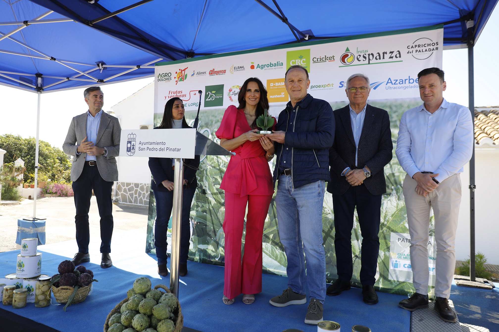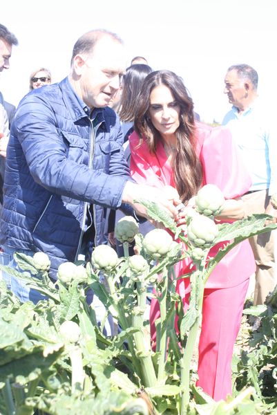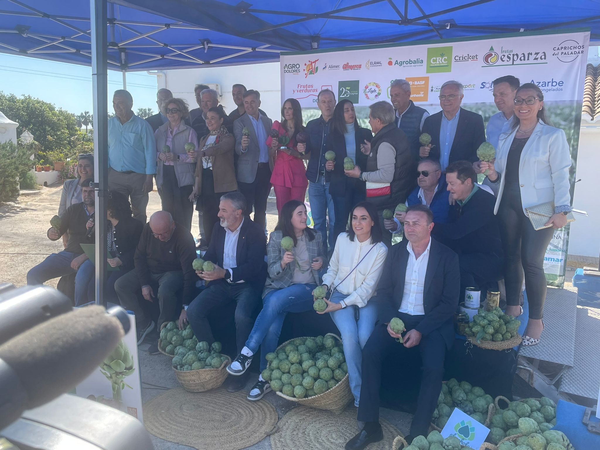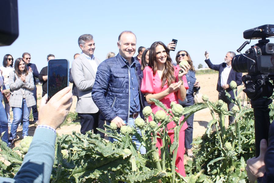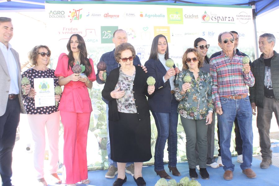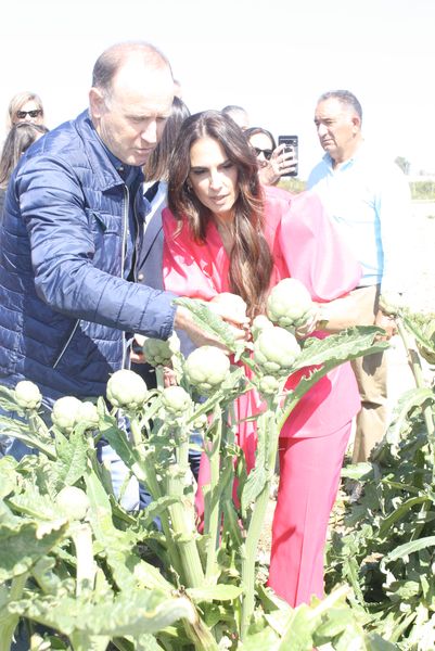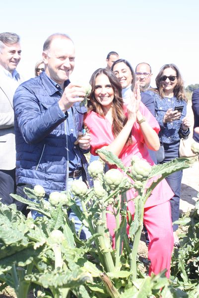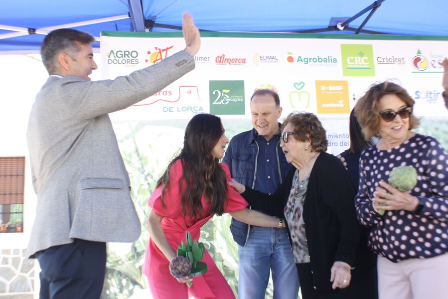 El acto, cargado de simbolismo, comenzó con el corte ceremonial del segundo colmo, ese brote secundario que demuestra la vitalidad y la doble capacidad productiva del cultivo. Entre risas, flashes y el murmullo de quienes conocen el valor de la tierra, la artista malagueña Nuria Fergó, madrina de honor de esta edición, se declaró «fan de las alcachofas» y animó al consumo responsable: «Además de estar buenísimas, son un producto excelente para nuestra salud». Sus palabras, espontáneas y cercanas, resonaron entre los asistentes mientras agradecía, con emoción visible, el trabajo diario de los agricultores que hacen posible que este manjar llegue a las mesas de medio mundo.