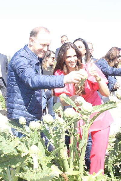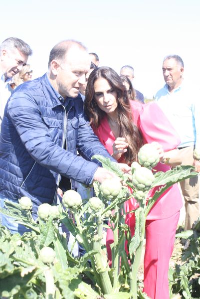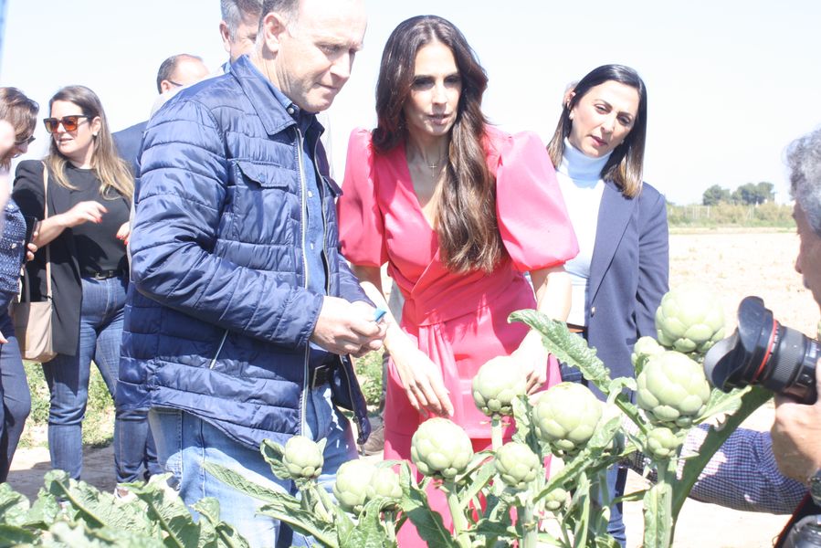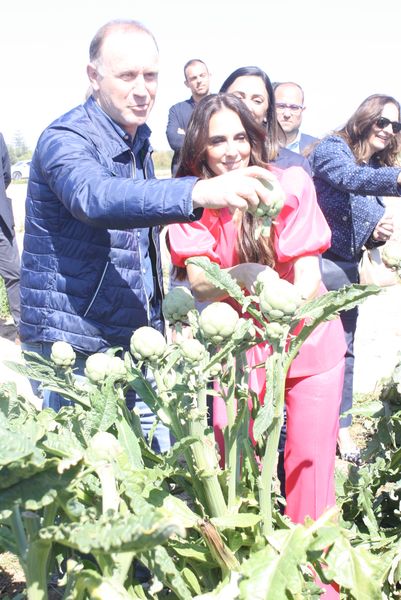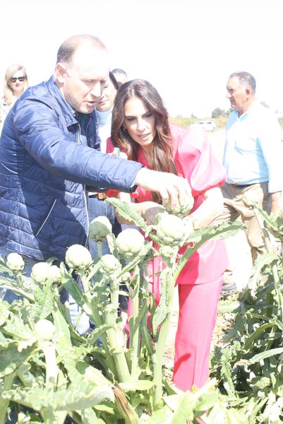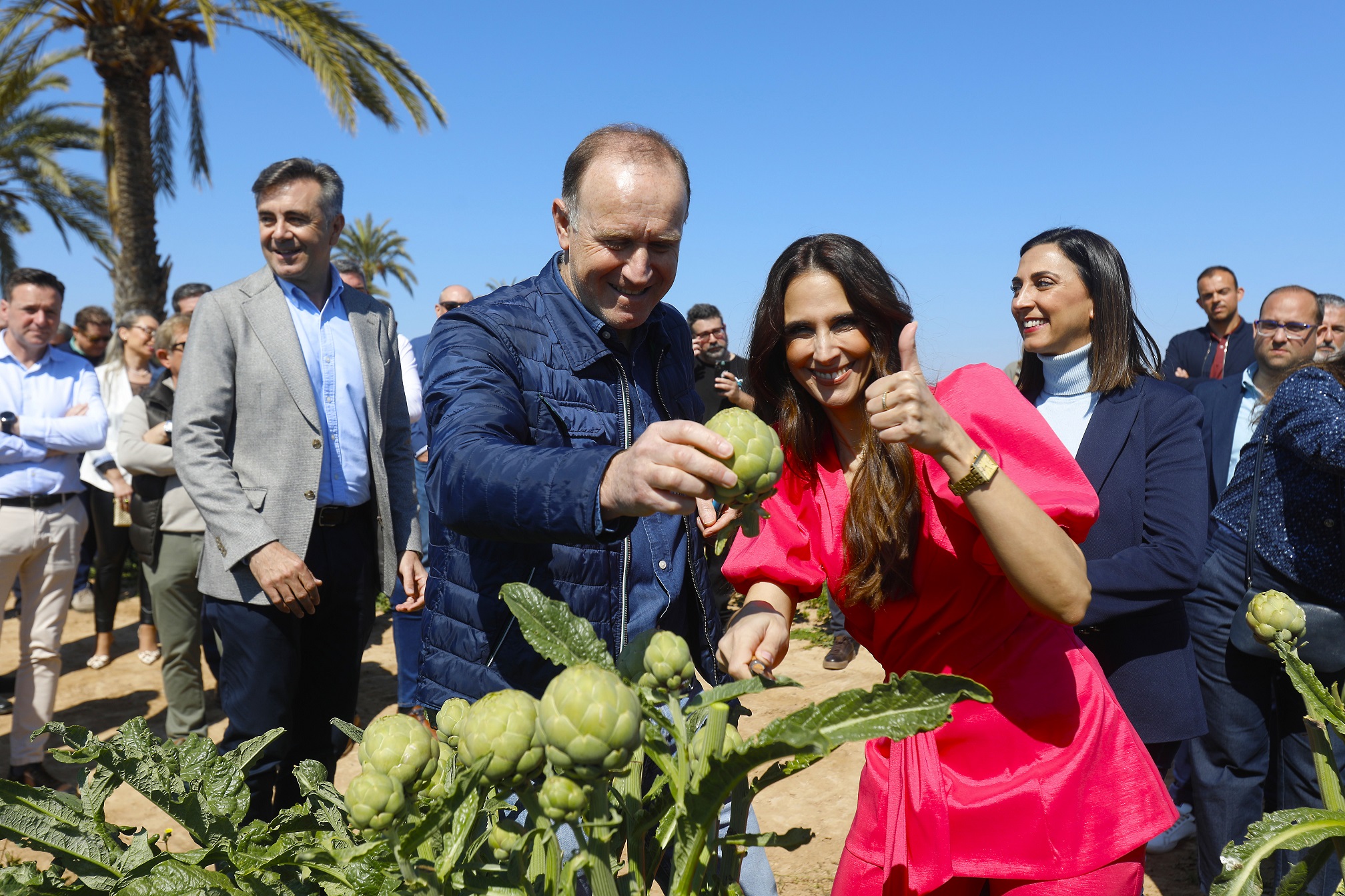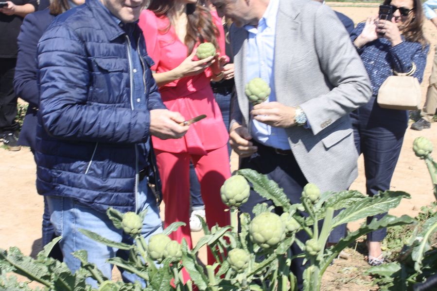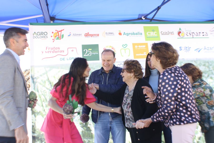El acto, cargado de simbolismo, comenzó con el corte ceremonial del segundo colmo, ese brote secundario que demuestra la vitalidad y la doble capacidad productiva del cultivo. Entre risas, flashes y el murmullo de quienes conocen el valor de la tierra, la artista malagueña Nuria Fergó, madrina de honor de esta edición, se declaró «fan de las alcachofas» y animó al consumo responsable: «Además de estar buenísimas, son un producto excelente para nuestra salud». Sus palabras, espontáneas y cercanas, resonaron entre los asistentes mientras agradecía, con emoción visible, el trabajo diario de los agricultores que hacen posible que este manjar llegue a las mesas de medio mundo.