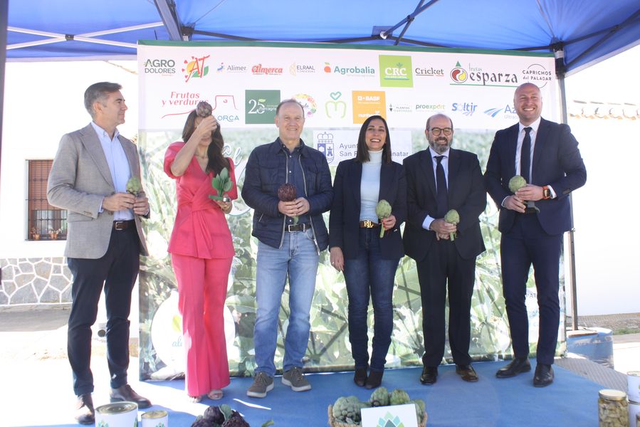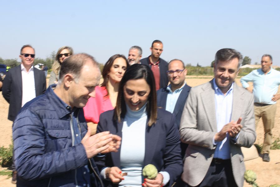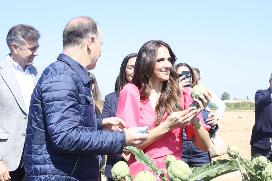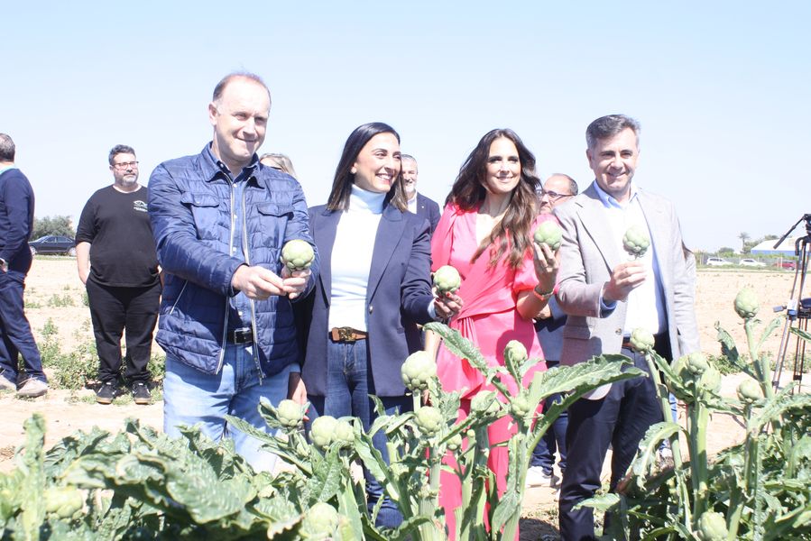 La consejera de Agua, Agricultura, Ganadería y Pesca de la Región de Murcia, Sara Rubira, aprovechó la jornada para desgranar datos que dibujan un sector en plena expansión. Murcia cuenta ya con más de 5.000 hectáreas dedicadas a la alcachofa —un 5% más que el año anterior— y se espera que la producción supere las 105.000 toneladas esta campaña, 24.000 más que en 2025. «Ocho de cada diez alcachofas que se exportan en España son de Murcia», recordó Rubira, subrayando el peso estratégico de un cultivo que encuentra en el Valle del Guadalentín y el Campo de Cartagena sus principales bastiones.
