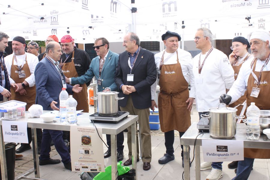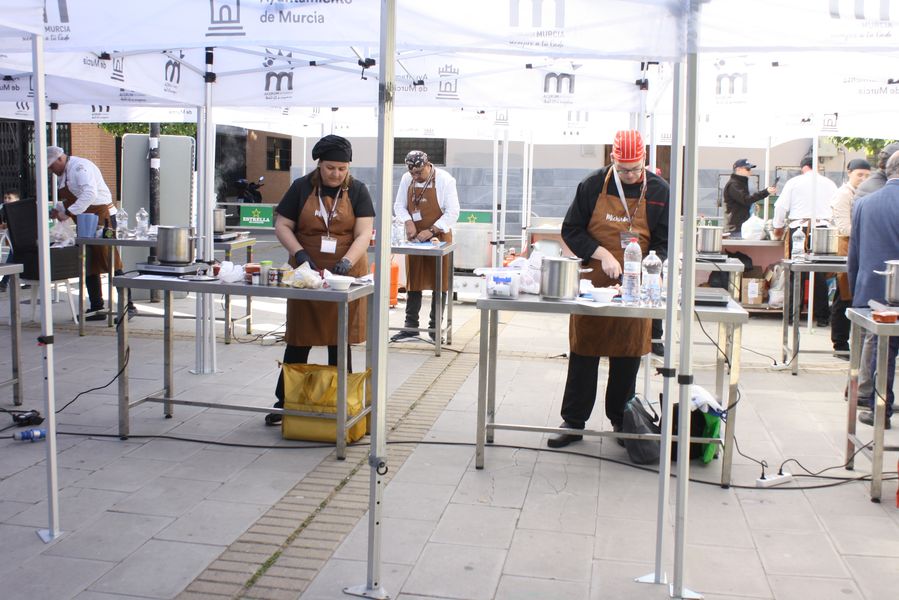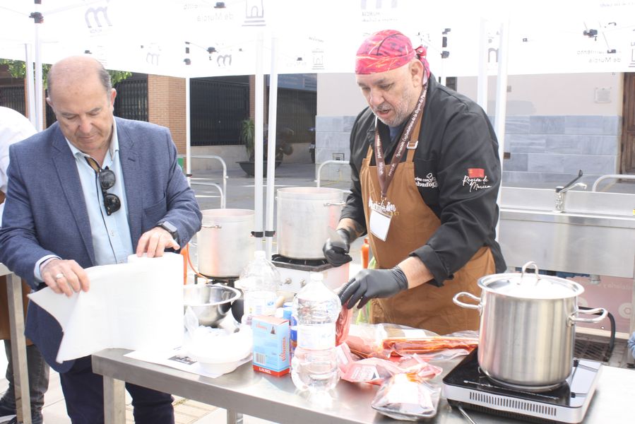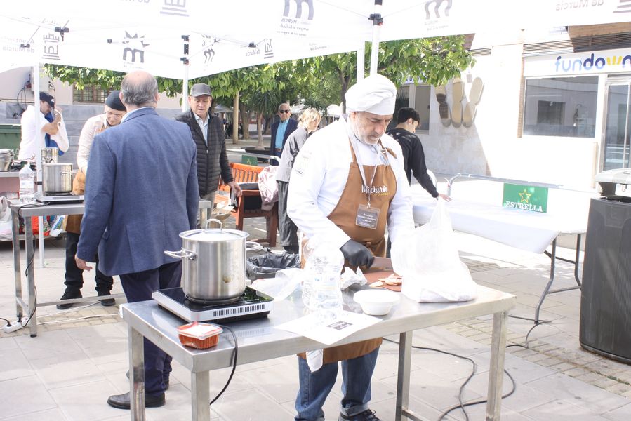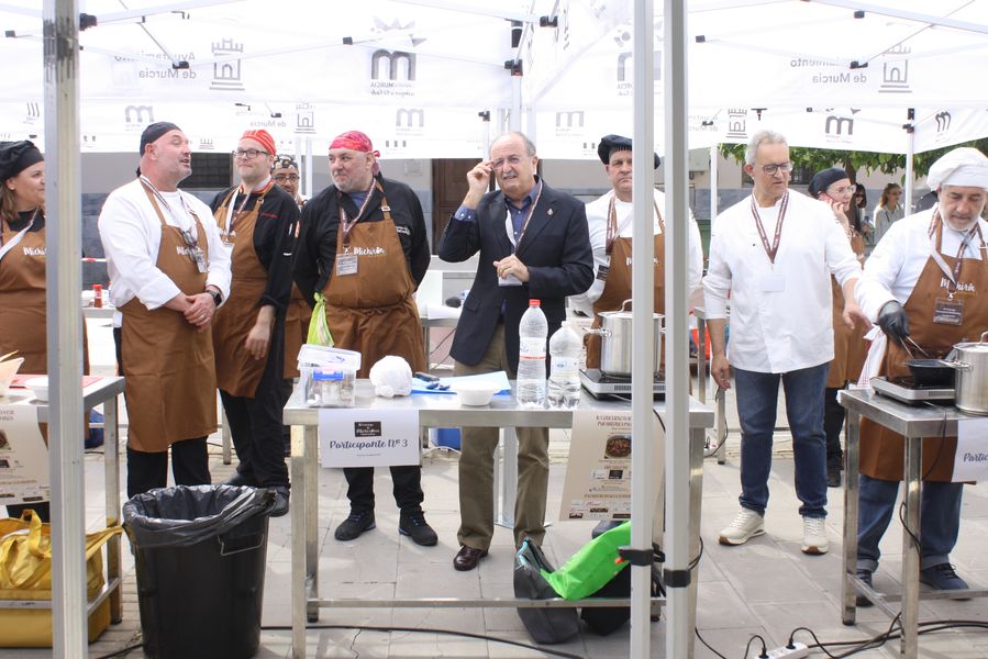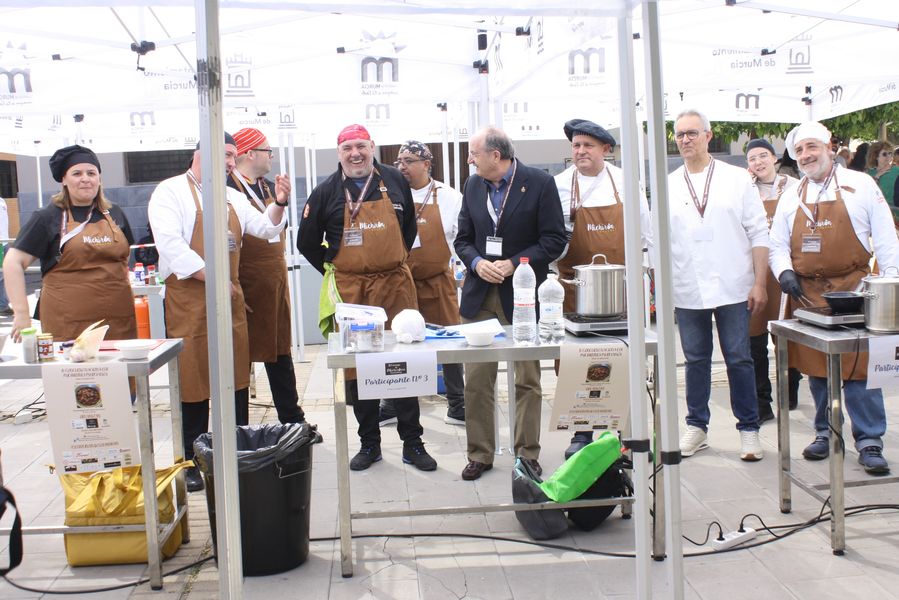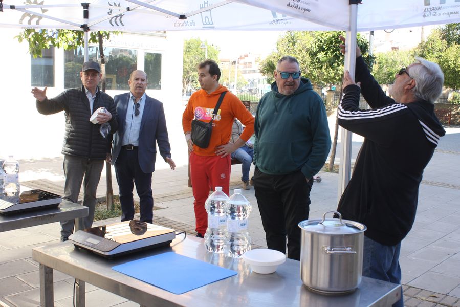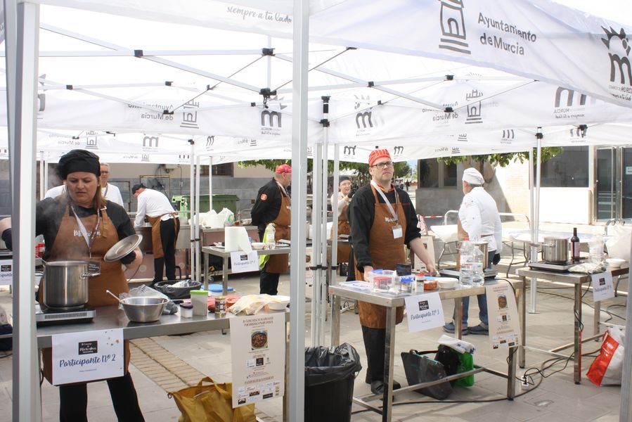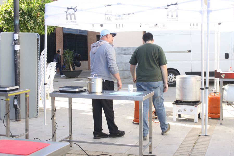 La jornada arrancó con la acreditación de los participantes, quienes, ataviados con el uniforme reglamentario, recibieron los ingredientes base: michirones, agua, huesos de jamón y sobrasada de chato murciano. A partir de ahí, cada cual desplegó su particular interpretación de la receta, respetando escrupulosamente la tradición pero imprimiendo su sello personal.