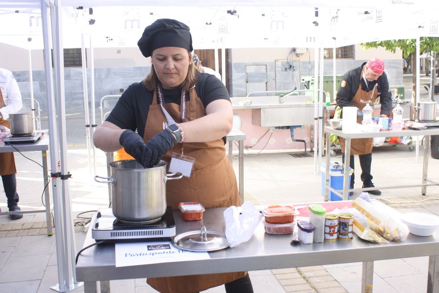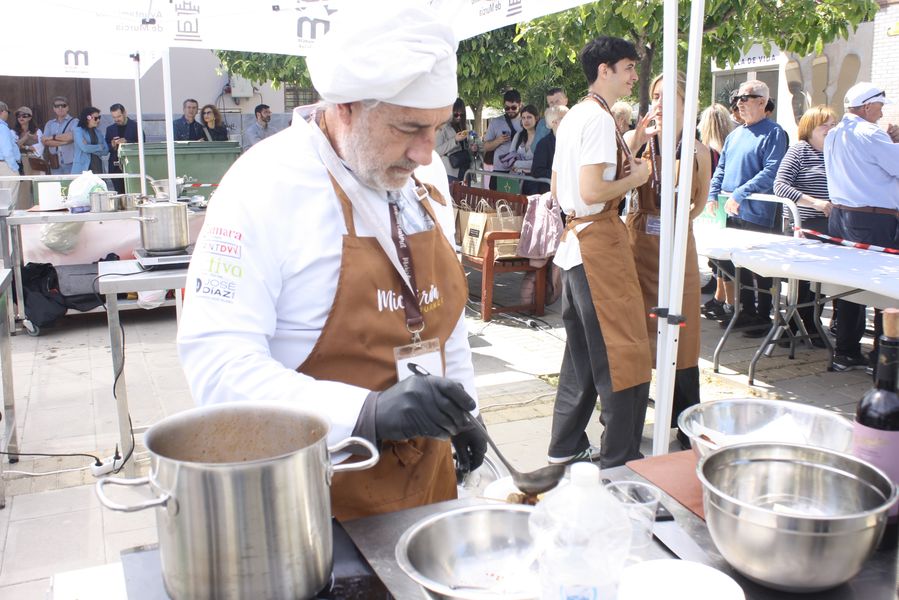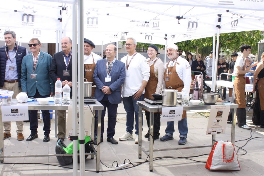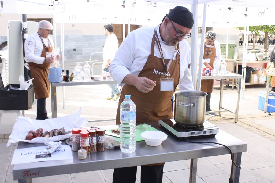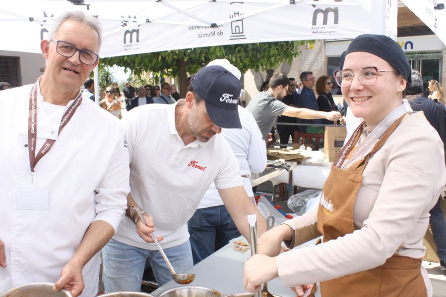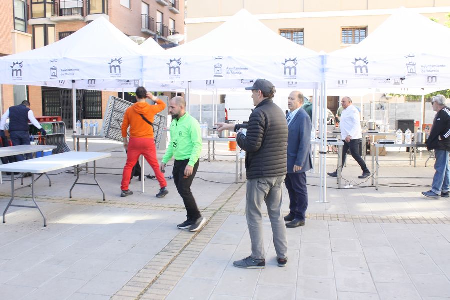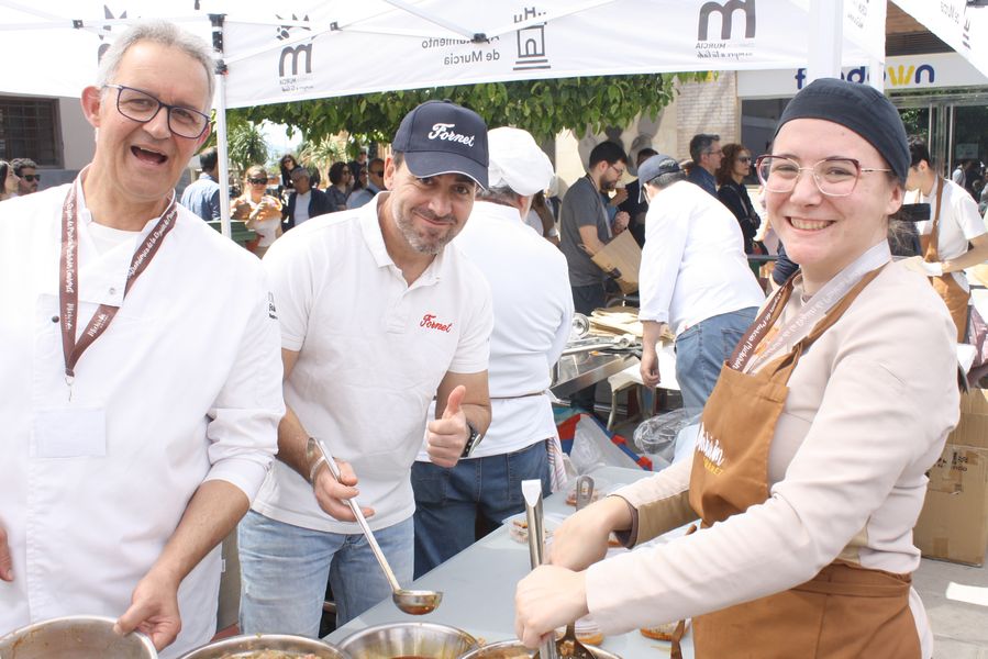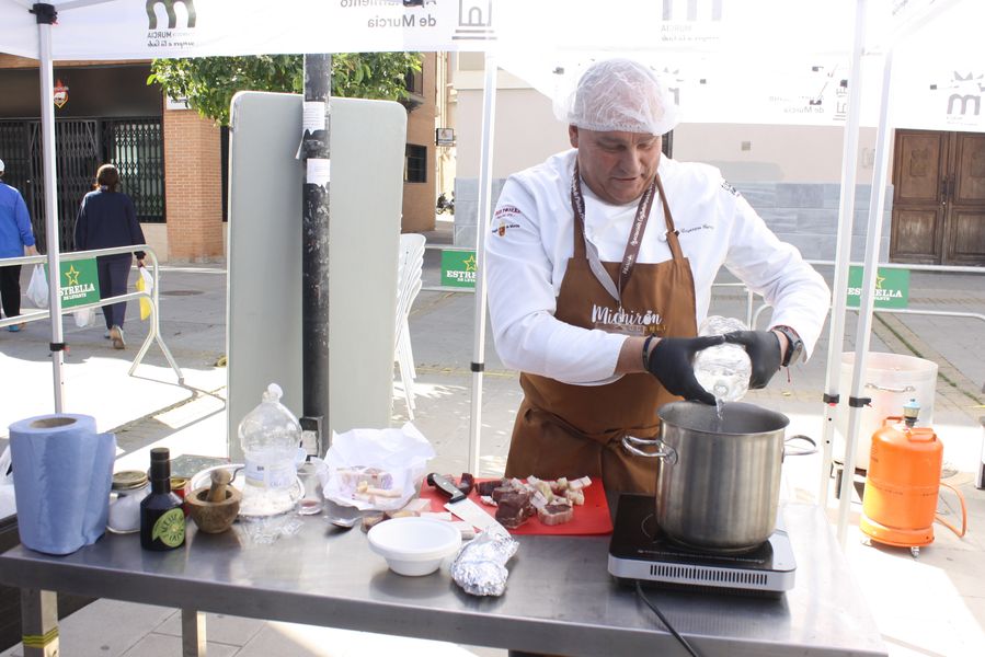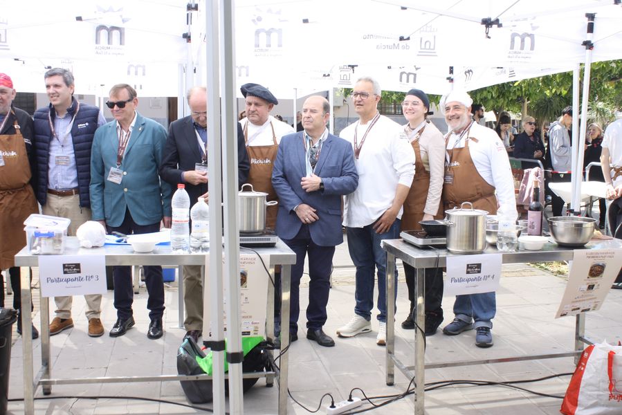 La jornada arrancó con la acreditación de los participantes, quienes, ataviados con el uniforme reglamentario, recibieron los ingredientes base: michirones, agua, huesos de jamón y sobrasada de chato murciano. A partir de ahí, cada cual desplegó su particular interpretación de la receta, respetando escrupulosamente la tradición pero imprimiendo su sello personal.