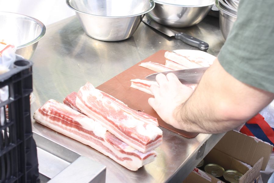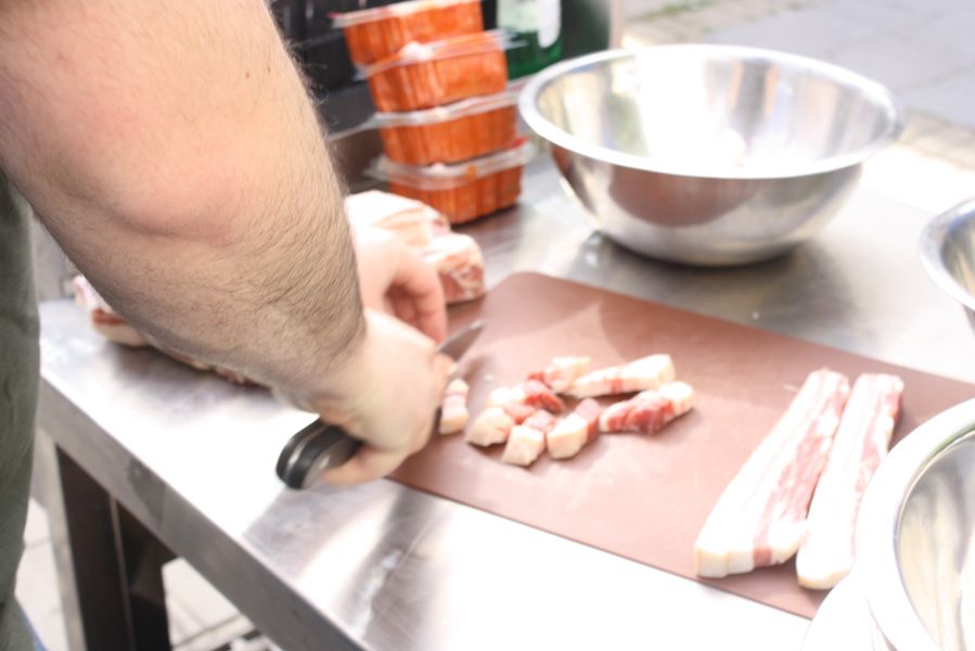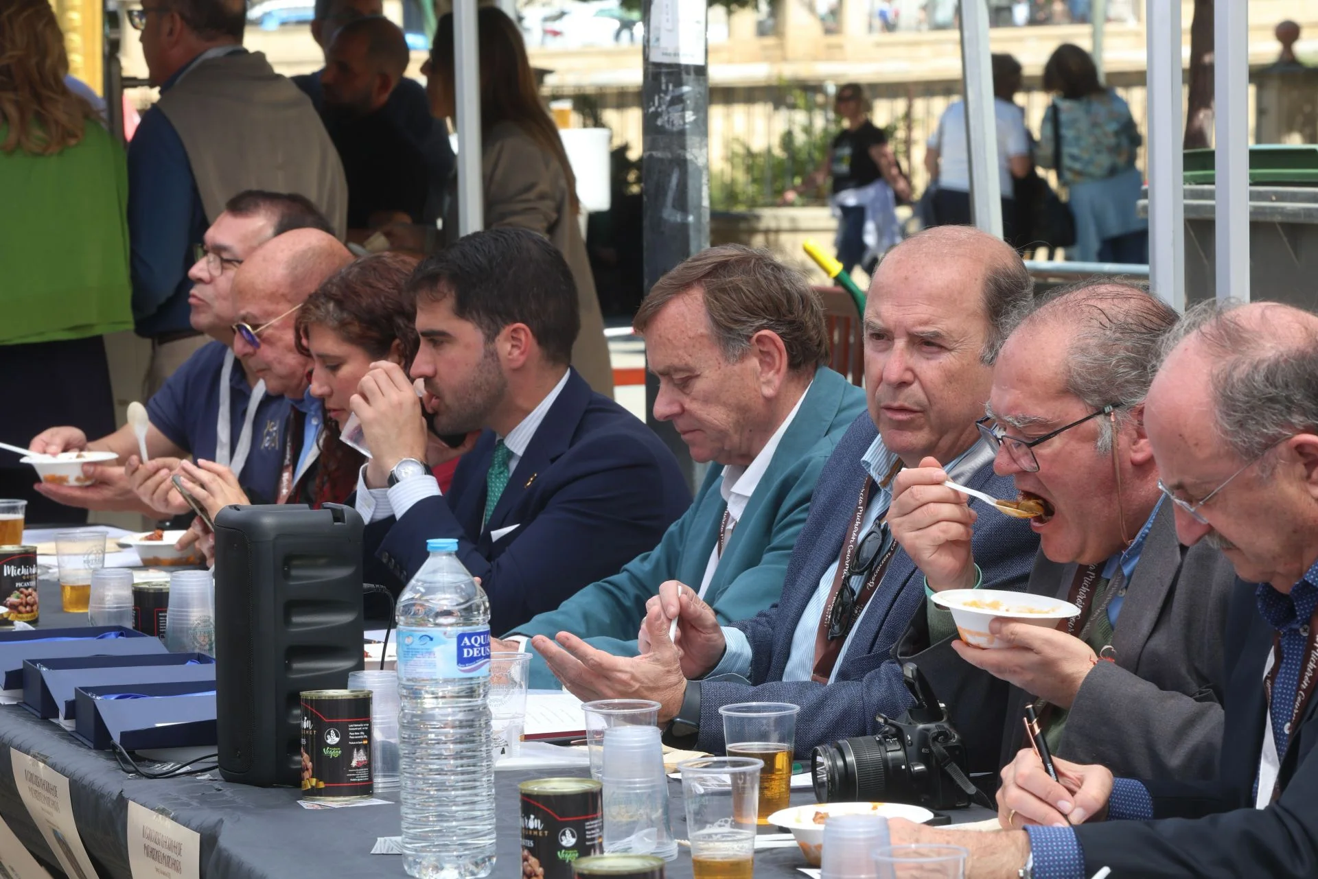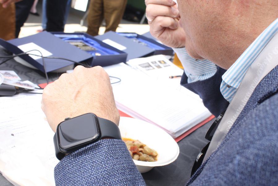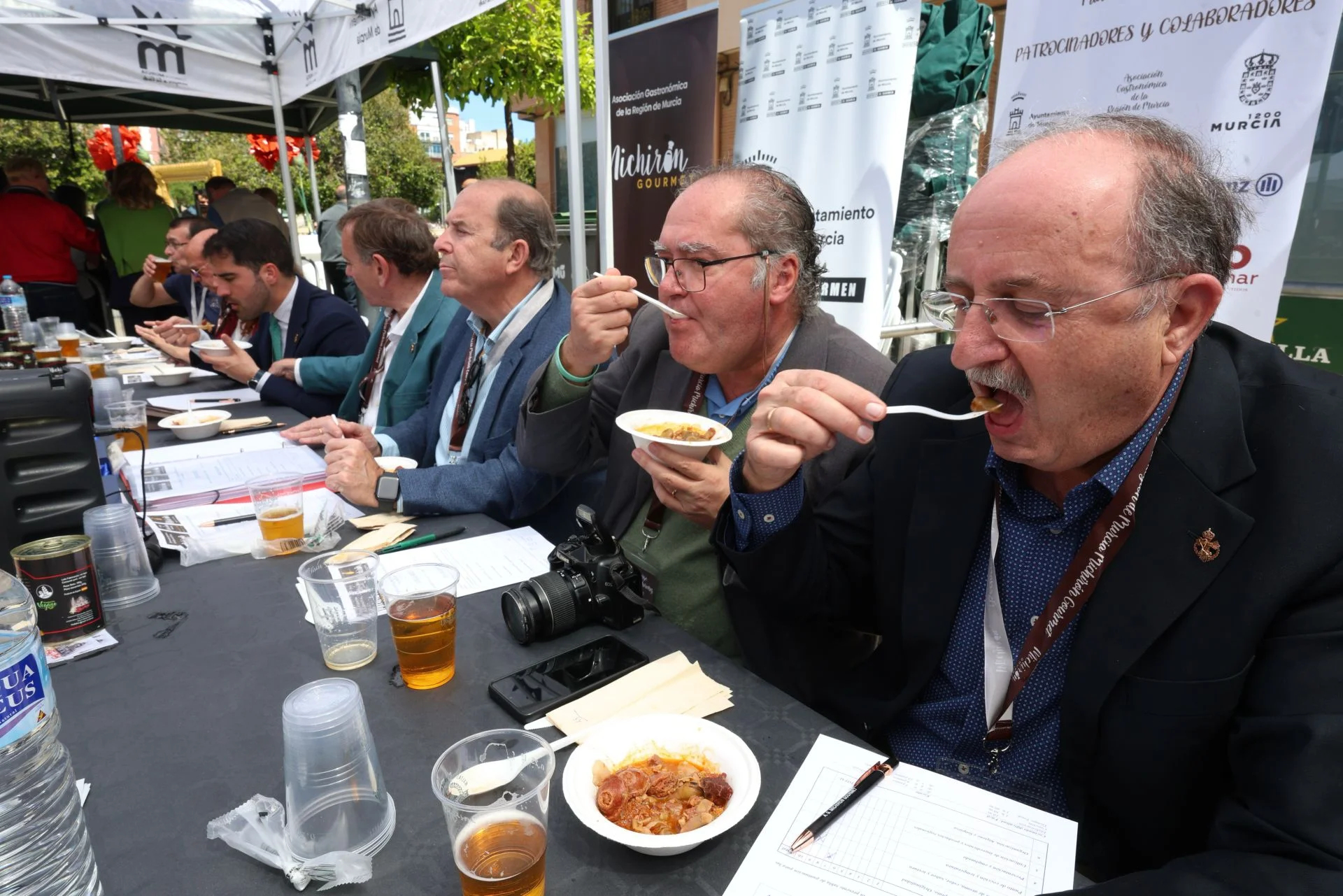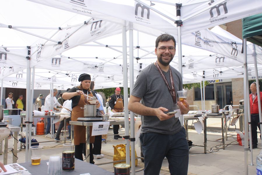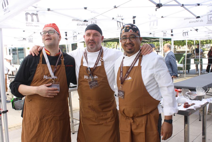 La jornada arrancó con la acreditación de los participantes, quienes, ataviados con el uniforme reglamentario, recibieron los ingredientes base: michirones, agua, huesos de jamón y sobrasada de chato murciano. A partir de ahí, cada cual desplegó su particular interpretación de la receta, respetando escrupulosamente la tradición pero imprimiendo su sello personal.
