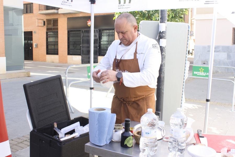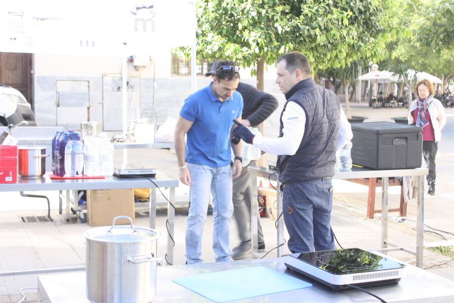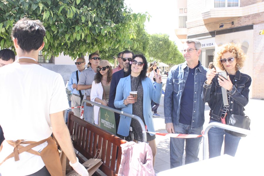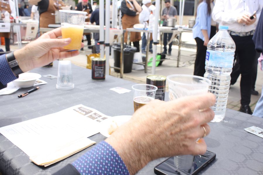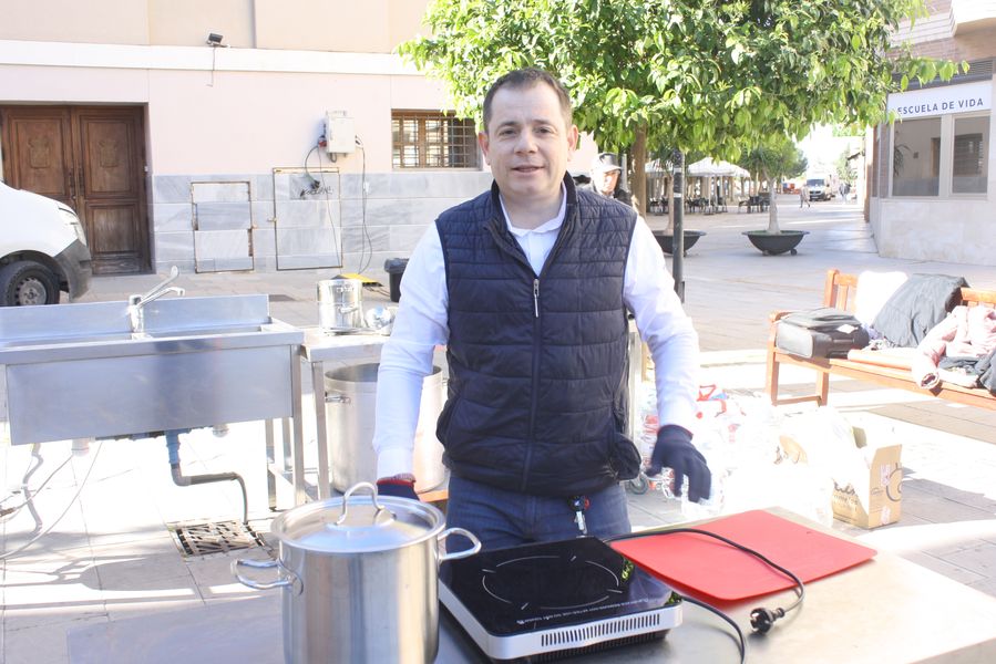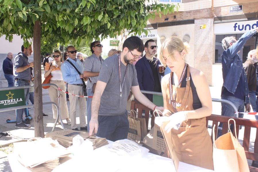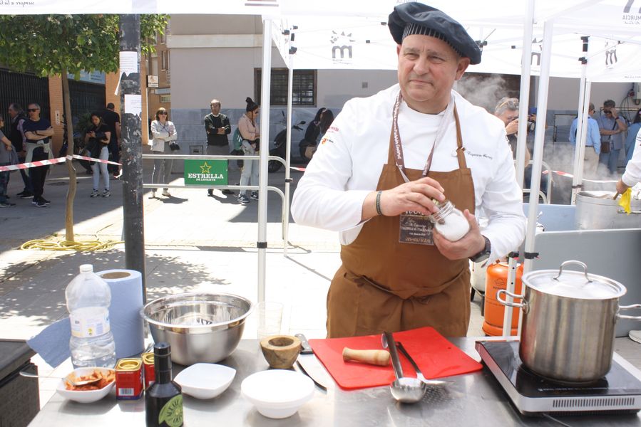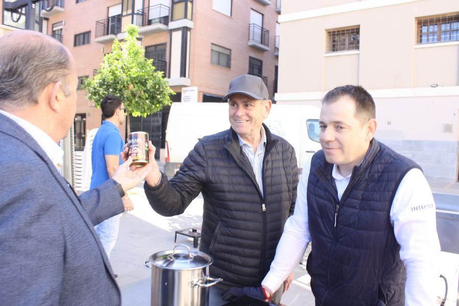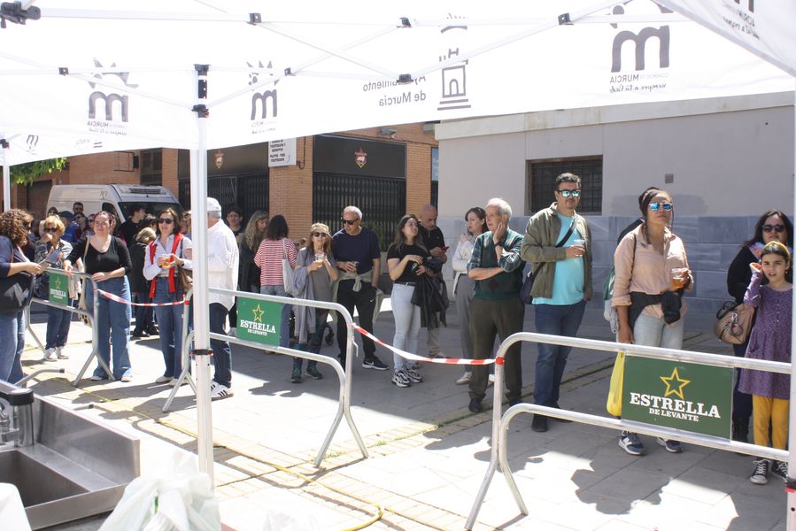 Durante una hora y cuarenta y cinco minutos, el reloj marcó el ritmo de una coreografía culinaria en la que el tiempo se medía en cucharas, humo y paciencia. Mientras los concursantes removían sus ollas, el ganador de la edición anterior, Ricardo Lozano, atendía dos gigantescas cazuelas comunitarias de la que se sirvieron cerca de quinientas raciones gratuitas, con maridaje de cerveza Estrella de Levante, convirtiendo la competición en una auténtica fiesta popular. Vecinos, visitantes y curiosos degustaron el guiso al compás de conversaciones sobre sabores, recuerdos y orgullo huertano.