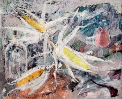 El menú, titulado “Mesa y Mantel en la Colección Nake”, fue una sucesión de homenajes sensoriales. Se inició con tres aperitivos que ya anunciaban la profundidad del encuentro: los “Peteretes”, inspirados en La comunión de los niños pobres (1966) de Sofía Morales, evocaron la pureza y la dignidad en lo sencillo; una ensaladilla de huevos con salsa de atún y pimiento tajo, guiada por el Bodegón con botella negra (1925) de Pedro Flores, donde lo oculto se volvió presencia; y un flote de mazorca asada con requesón, limón y cilantro, tributo a Panochas de José Barceló, que celebró la tierra, la huerta y la cosecha con una pincelada casi telúrica.