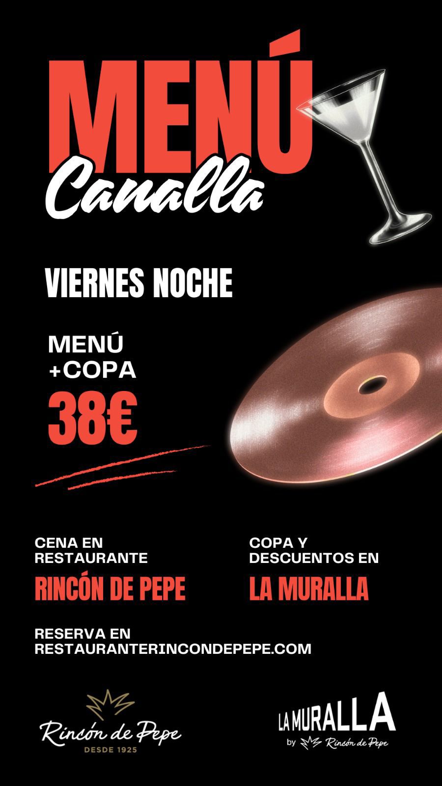 Por 38 euros por persona, el Menú Canalla incluye dos bebidas durante la cena y una copa de cortesía en La Muralla, el espacio de ocio ubicado en los sótanos del restaurante. Este enclave, que conserva restos de la muralla defensiva islámica de Murcia (siglos XII-XIII), ofrece además descuentos exclusivos para los asistentes. La combinación de gastronomía, historia y ambiente nocturno convierte la propuesta en un plan completo para iniciar el fin de semana.