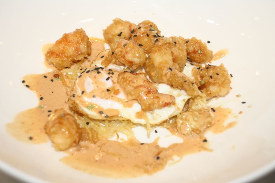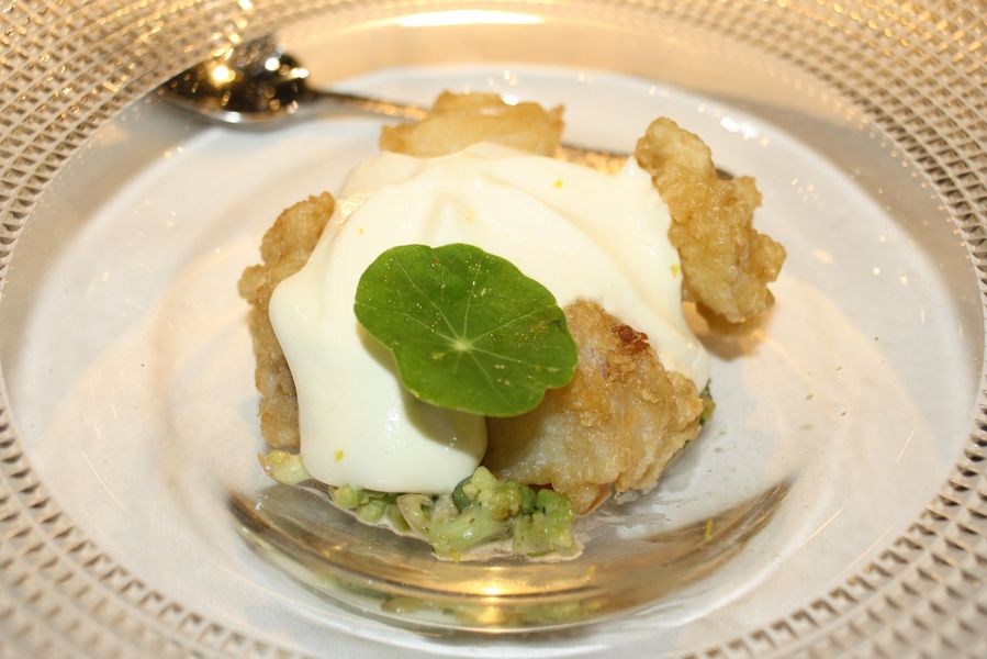 Como plato principal, la merluza en tempura con encurtidos y mayonesa de lima kaffir aporta frescura y sofisticación.