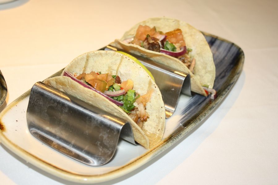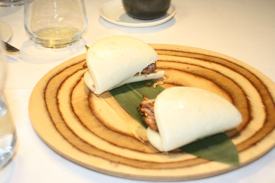El viaje continúa hacia territorios ibéricos y mexicanos. El pan bao relleno de secreto de cerdo ibérico y salsa black pepper ofrece un contraste de texturas y especias, mientras que los tacos de carnitas con cebolla morada, servidos en tortillas caseras de maíz, rinden homenaje a la autenticidad de la cocina tradicional mexicana.
