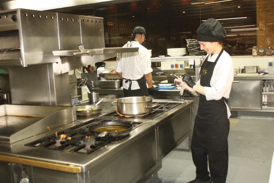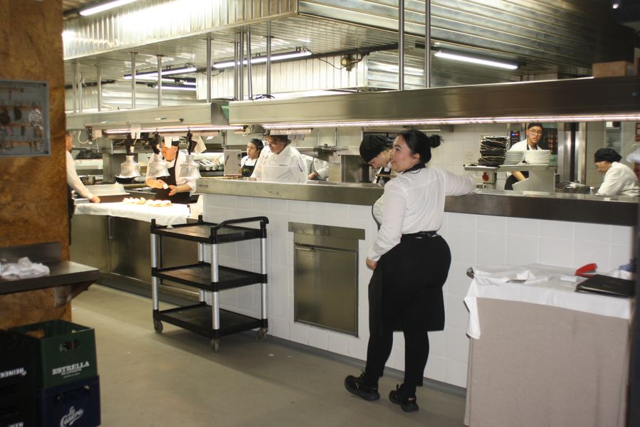 Durante la velada, los comensales tienen la oportunidad de disfrutar del trabajo de los profesionales del local a través de la gran cristalera que da acceso a la amplia cocina del Rincón de Pepe, donde el equipo dirigido por Nicolás prepara cada elaboración con precisión y pasión. Esta transparencia refuerza la conexión entre el público y el proceso culinario, añadiendo valor a la experiencia.