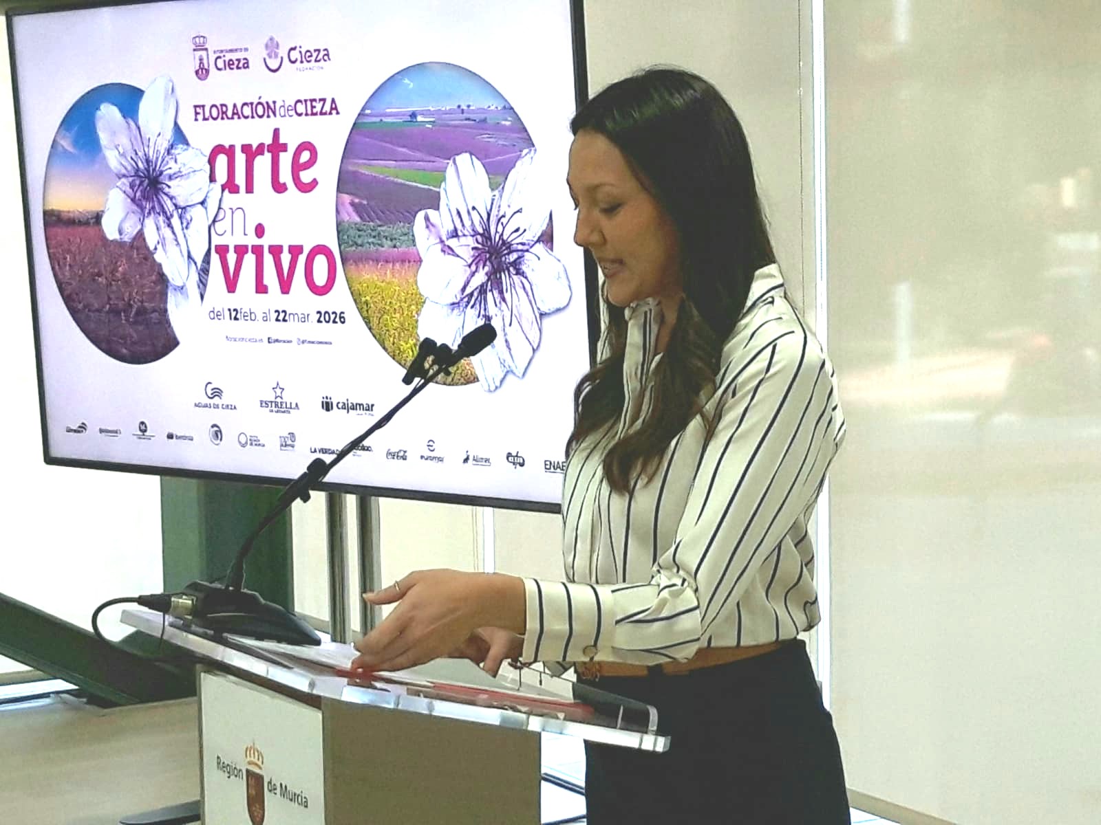 La Floración de Cieza se desarrollará este año del 12 de febrero al 22 de marzo, con un extenso programa de actividades de todo tipo que complementará las vistas a los campos ciezanos cuajados de árboles frutales en flor, según anunció la consejera de Turismo, Cultura, Juventud y Deportes, Carmen Conesa, acompañada por el alcalde de la localidad, Tomás Rubio.
