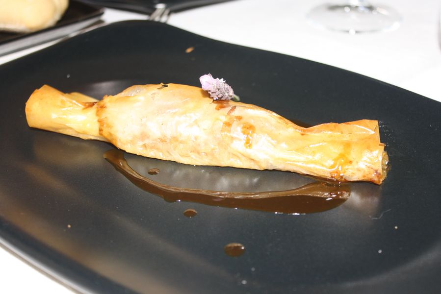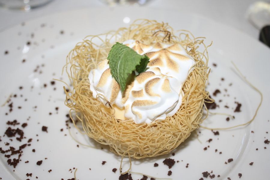 Ya en el banquete, la mantequilla Château Llagostera marcó el inicio de la sucesión de platos. Le siguió una delicia de pisto de bacalao, donde las patatas de la huerta se desdoblaron en texturas que jugaron con la firmeza y la cremosidad. El pescado, un lomo de corvina extraído del Mediterráneo, descansó sobre espinacas salteadas procedentes del Condado de Torre Pacheco y se vistió con una salsa Château Loire que aportó untuosidad y equilibrio aromático. El strudel salado de ibérico, coronado con manzana y demi-glace, cerró el capítulo de los platos fuertes mediante un contraste calculado entre lo dulce y lo cárnico. El desenlace llegó de la mano de un suspiro de España y un nido de limón cultivado en la propia finca, cubierto por merengue ligeramente dorado, mientras el cava rosado de Alceño elevó el brindis institucional y selló la experiencia.