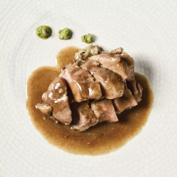 La carta de De Loreto es un homenaje a la tierra, con productos locales y de temporada. Entre sus platos estrella destaca la Pluma ibérica a la brasa, marinada 24 horas en soja y mirin, acompañada de un pesto de pistachos y shiitake encebollado, un ejemplo perfecto de cómo lo tradicional se puede reinventar sin perder su esencia.