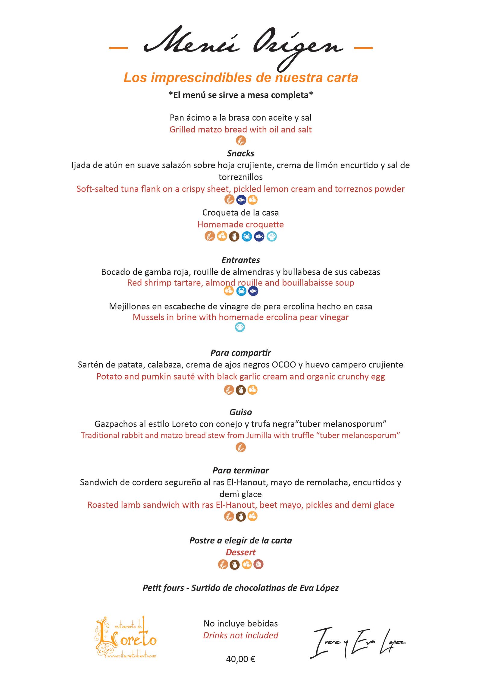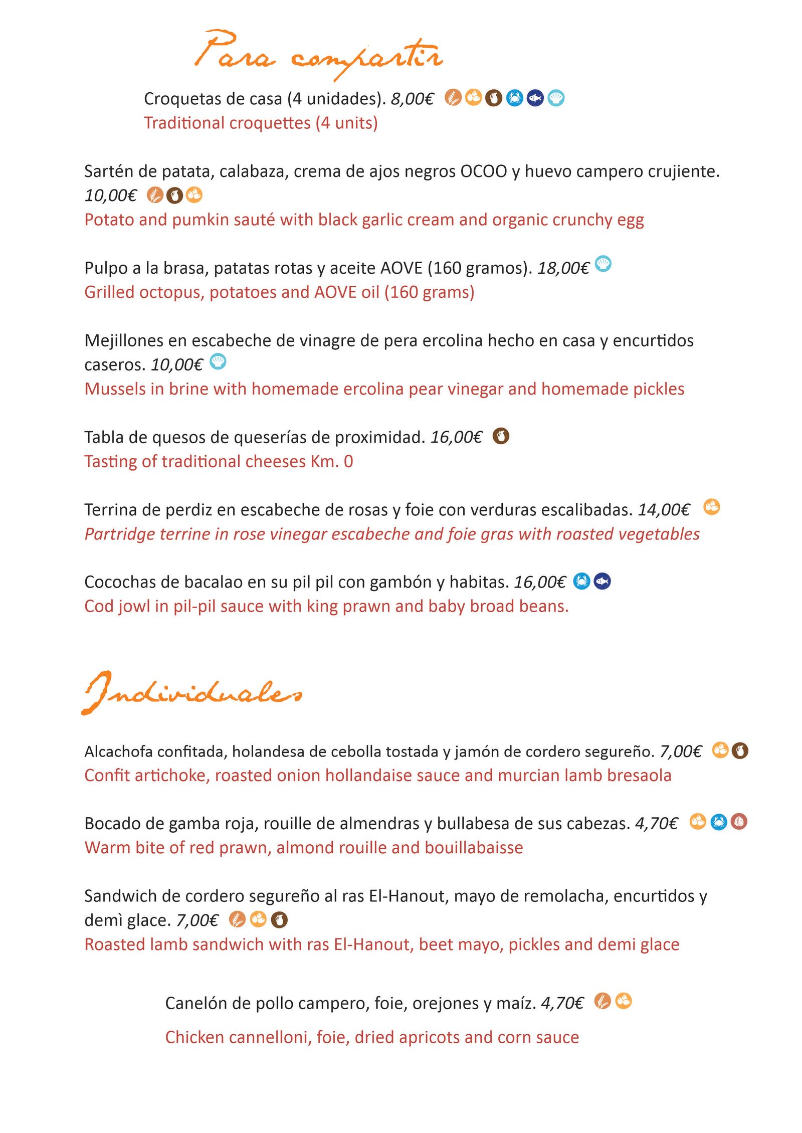El restaurante ofrece dos menús degustación que reflejan su filosofía: Origen e Inspiración. Ambos recorren los sabores de la huerta y el viñedo jumillero, con un enfoque actual, sostenible y respetuoso con el entorno.