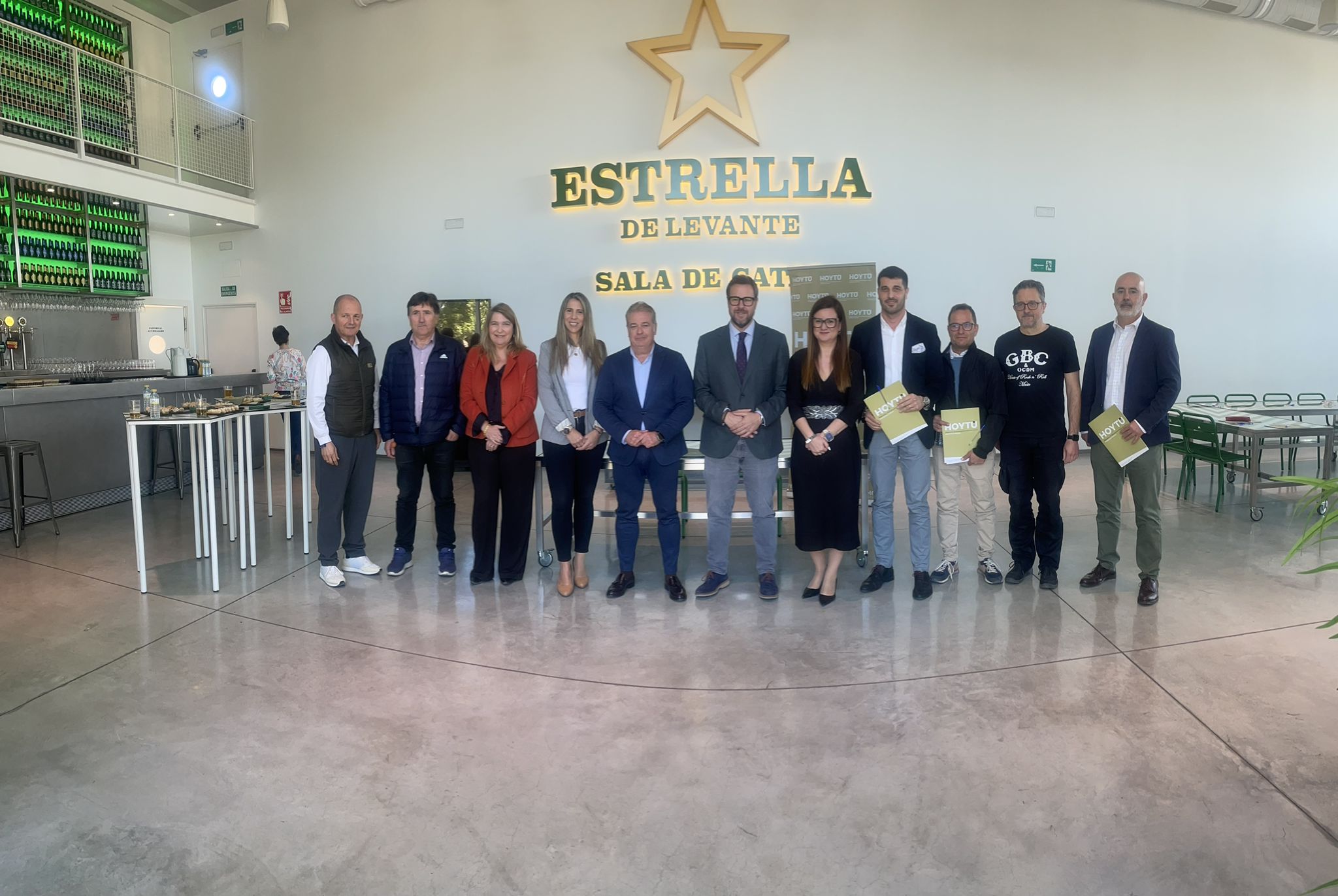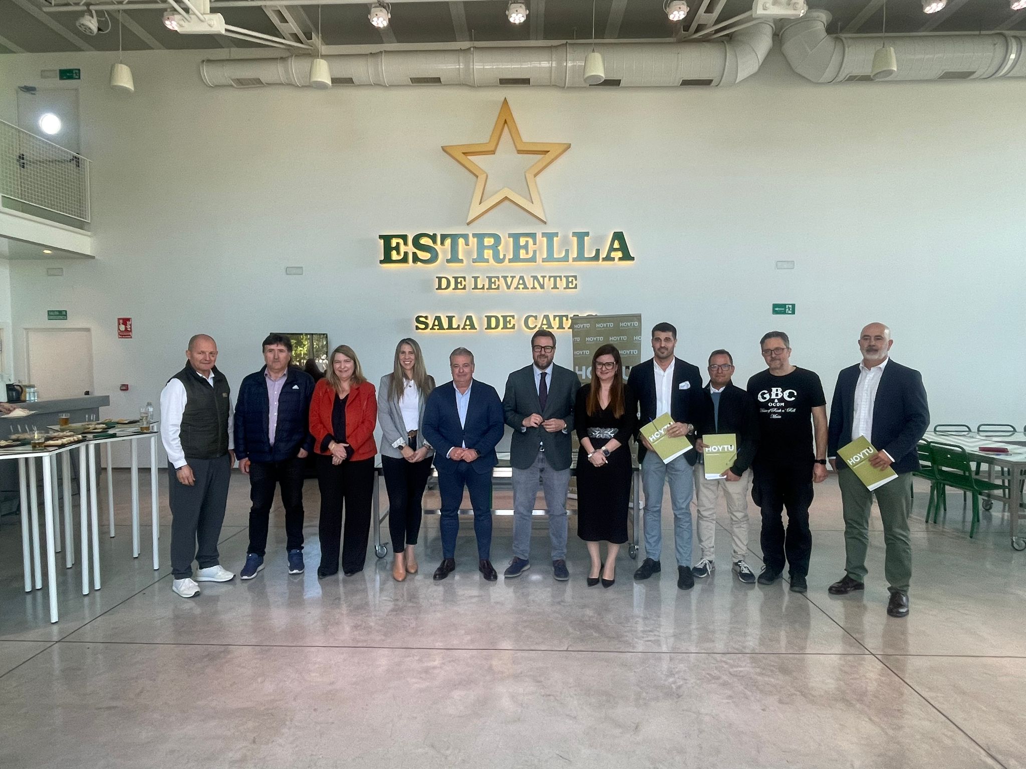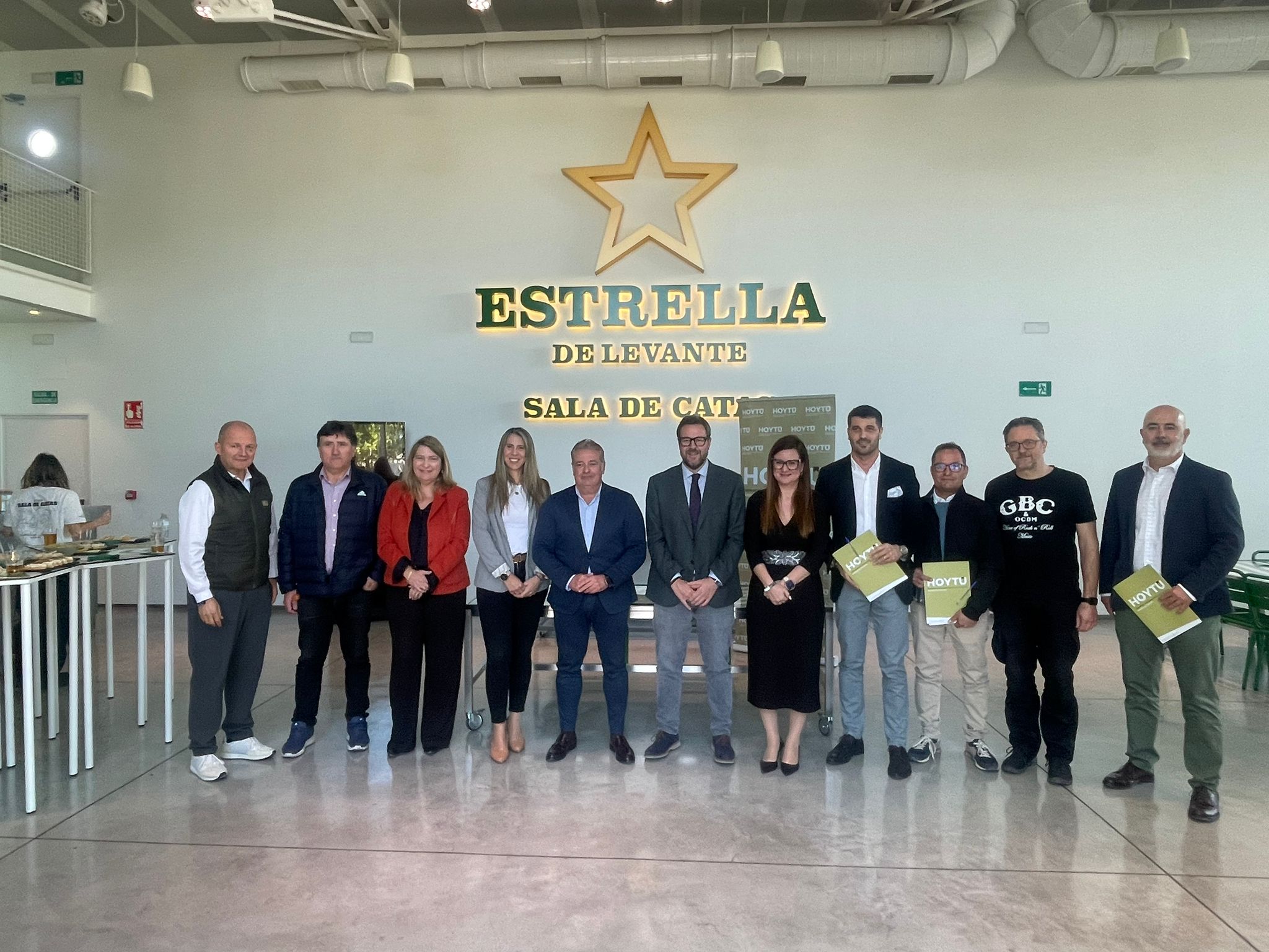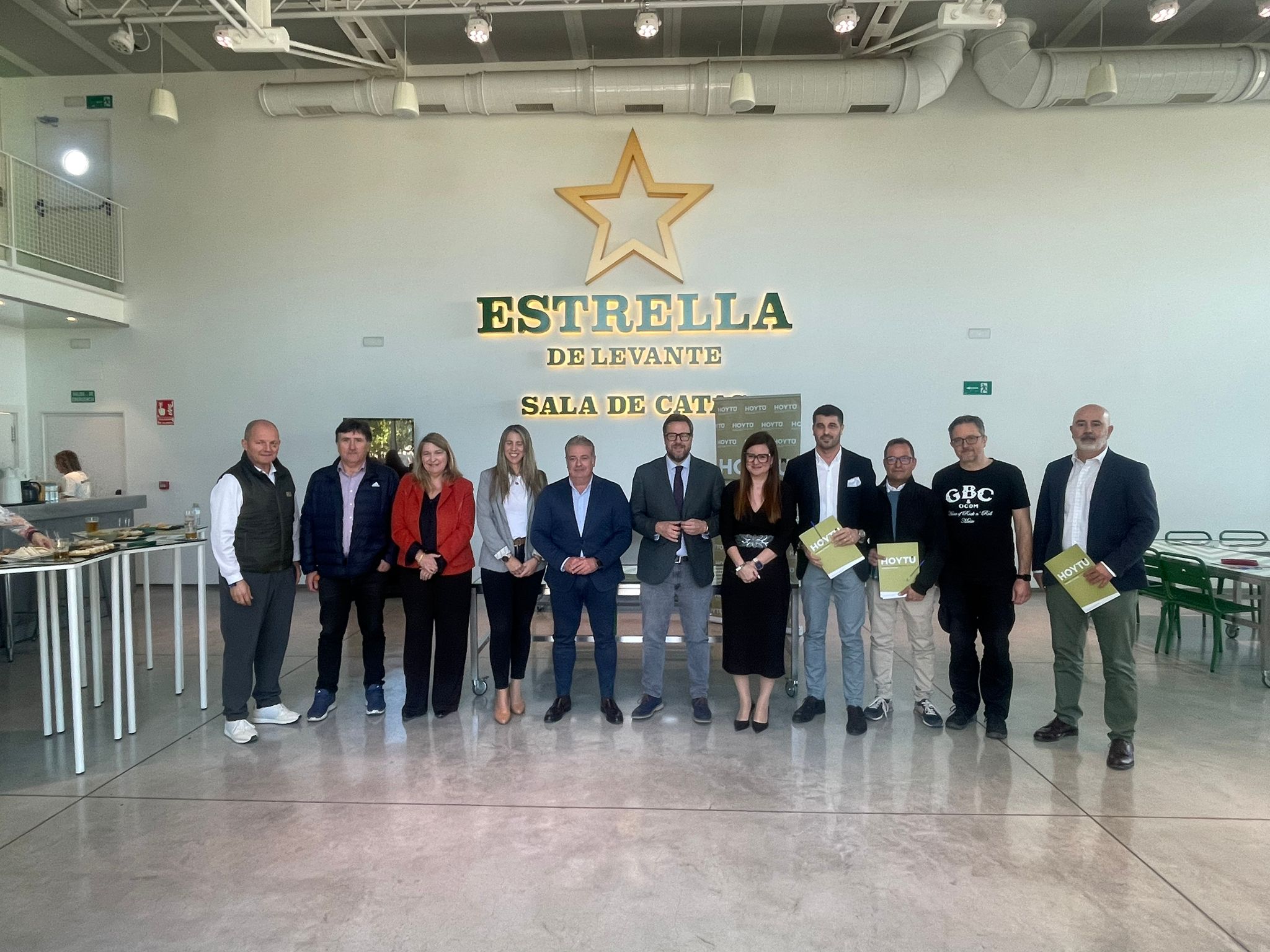 Antes de la presentación a la prensa, los miembros de HoyTú, celebraron una reunión de trabajo en la Sala de Catas de Estrella de Levante y, tras la firma del acuerdo, disfrutaron de un gran aperitivo donde no faltó la cerveza.