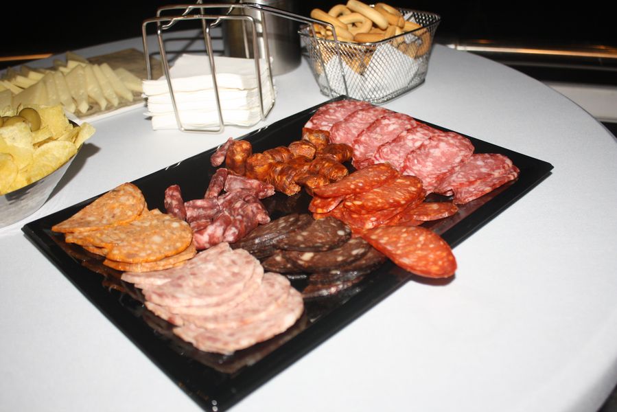 Finalmente, en las instalaciones de OXOX131, los asistentes fueron invitados a degustar un amplio aperitivo, con vinos y cervezas, con el cortador de jamón Pedro y, de postre, los típicos bizcochos borrachos de Ojós.