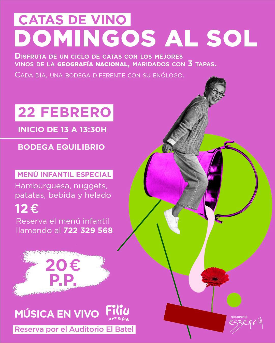La cita inaugural está fijada para el 22 de febrero, en horario de 13:00 a 13:30 horas, con la participación de Bodega Equilibrio. La experiencia, con un precio de 20 euros por persona, incluye la cata guiada, las tapas y la animación musical en directo de Filiu & CIA, que pondrá banda sonora a una sobremesa pensada para el relax y el disfrute compartido.