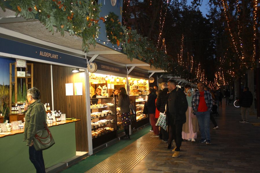 Paralelamente, el Mercadillo de la Glorieta mantiene su dinamismo con los talleres “Reciclamos la Navidad” (en colaboración con Ecoembes), donde los niños elaboran adornos navideños con cáscaras de frutos secos y latas recicladas… y al finalizar, reciben una galleta de jengibre en forma de estrella, horneada con miel local y especias de La Unión. A las 20:30, el Videomapping “Cuento de Navidad” proyectará una nueva secuencia centrada en los oficios gastronómicos: el panadero amasando con leña, la dulcera moldeando mazapán, el apicultor extrayendo la miel bajo el naranjo en flor.