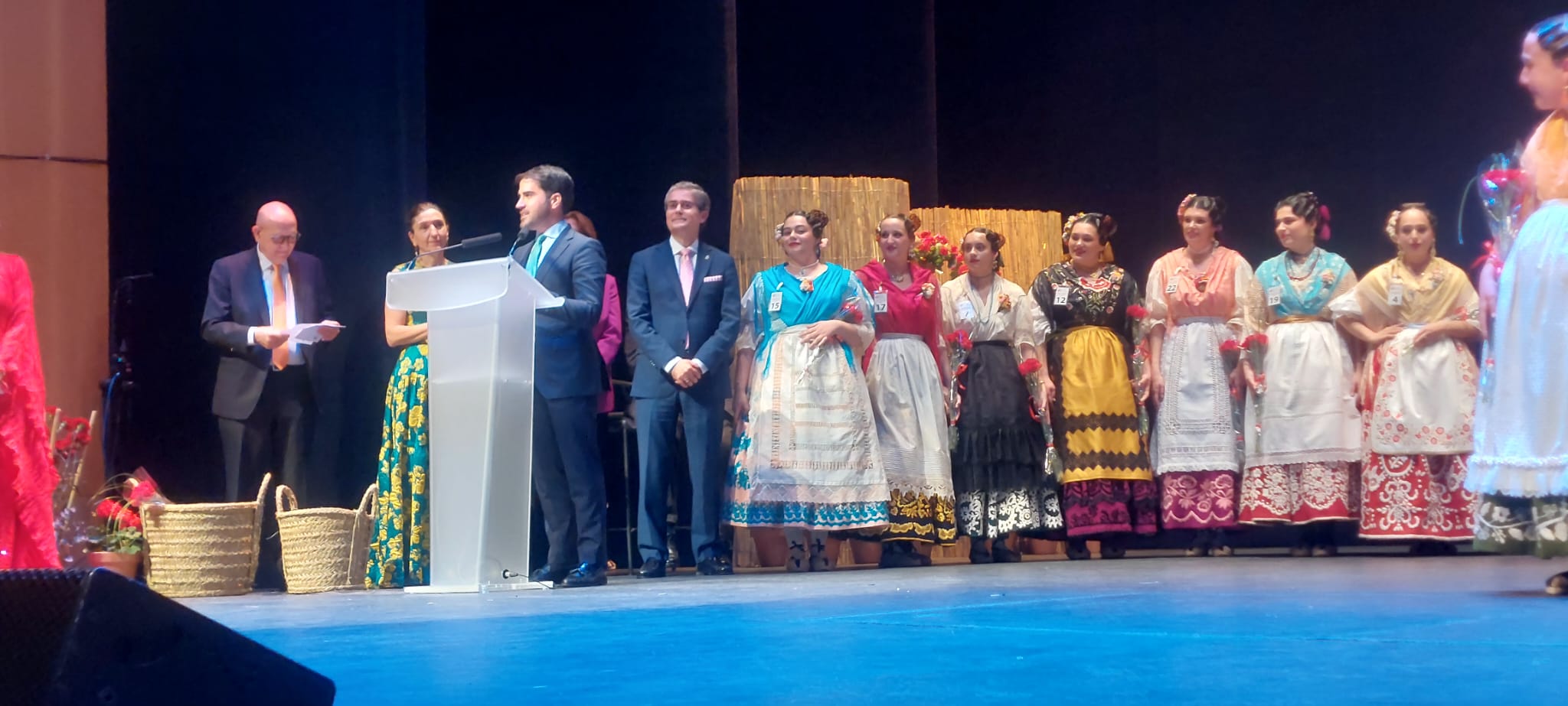 Entre claveles lanzados al patio de butacas y una ambientación que evocaba las barracas tradicionales, la música en directo de la peña El Cuartillo y las danzas del grupo Ermita Nueva sirvieron de hilo conductor para una gala que rindió homenaje a los oficios históricos y a la identidad rural de la región.