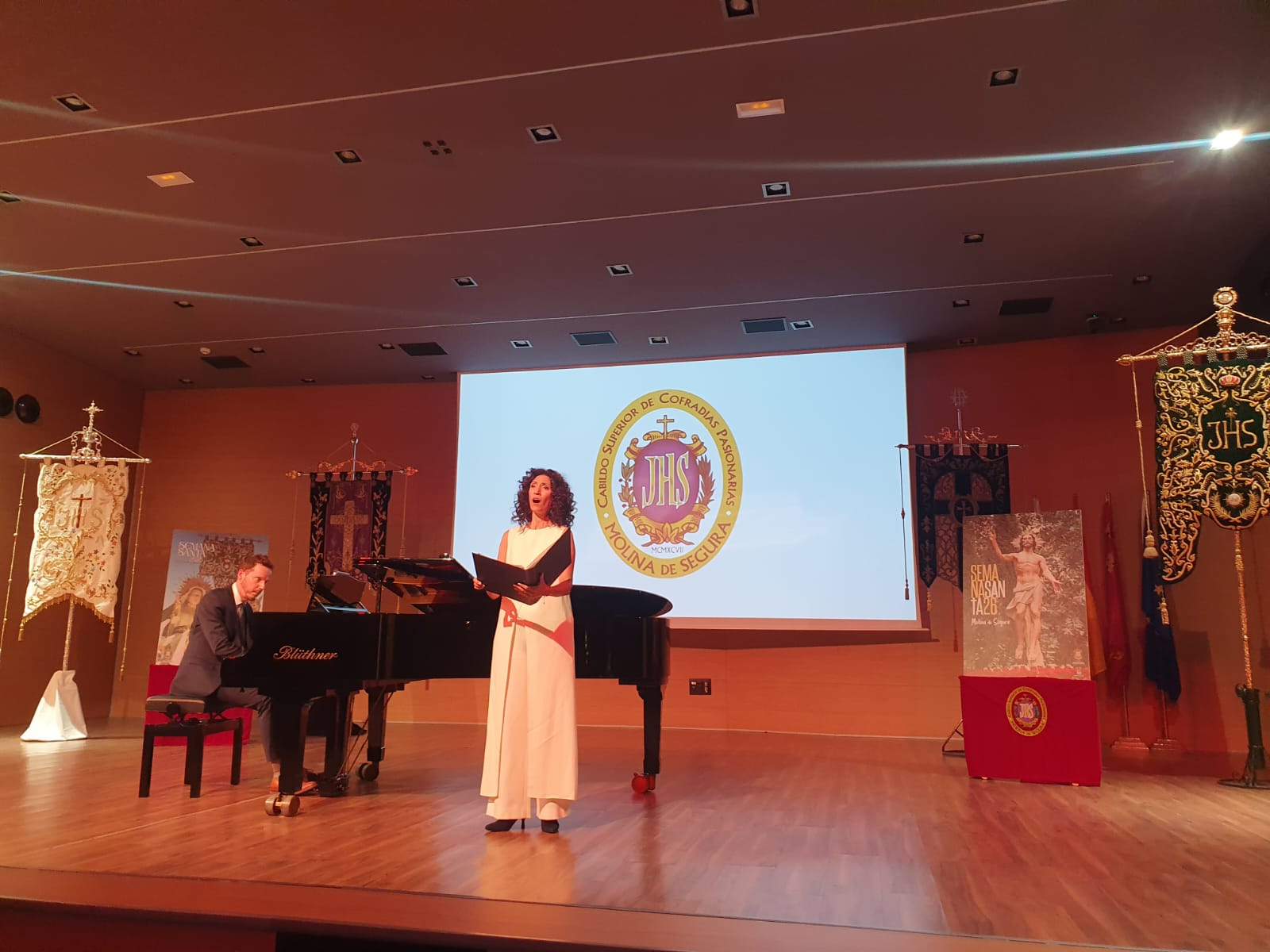 El acto de presentación oficial de la Semana Santa de 2026 de Molina de Segura ruvo lugar el pasado viernes 20 de febrero, en el Auditorio Virginia Martínez Fernández del MUDEM, un acto que ha contado con la actuación de la soprano Antonia Sandoval García, acompañada al piano por el belga Grégory Deboulle.