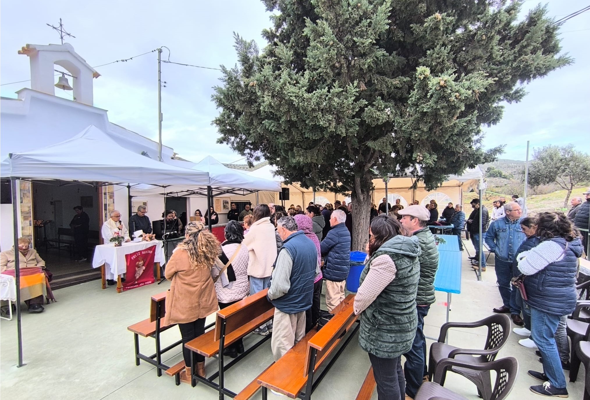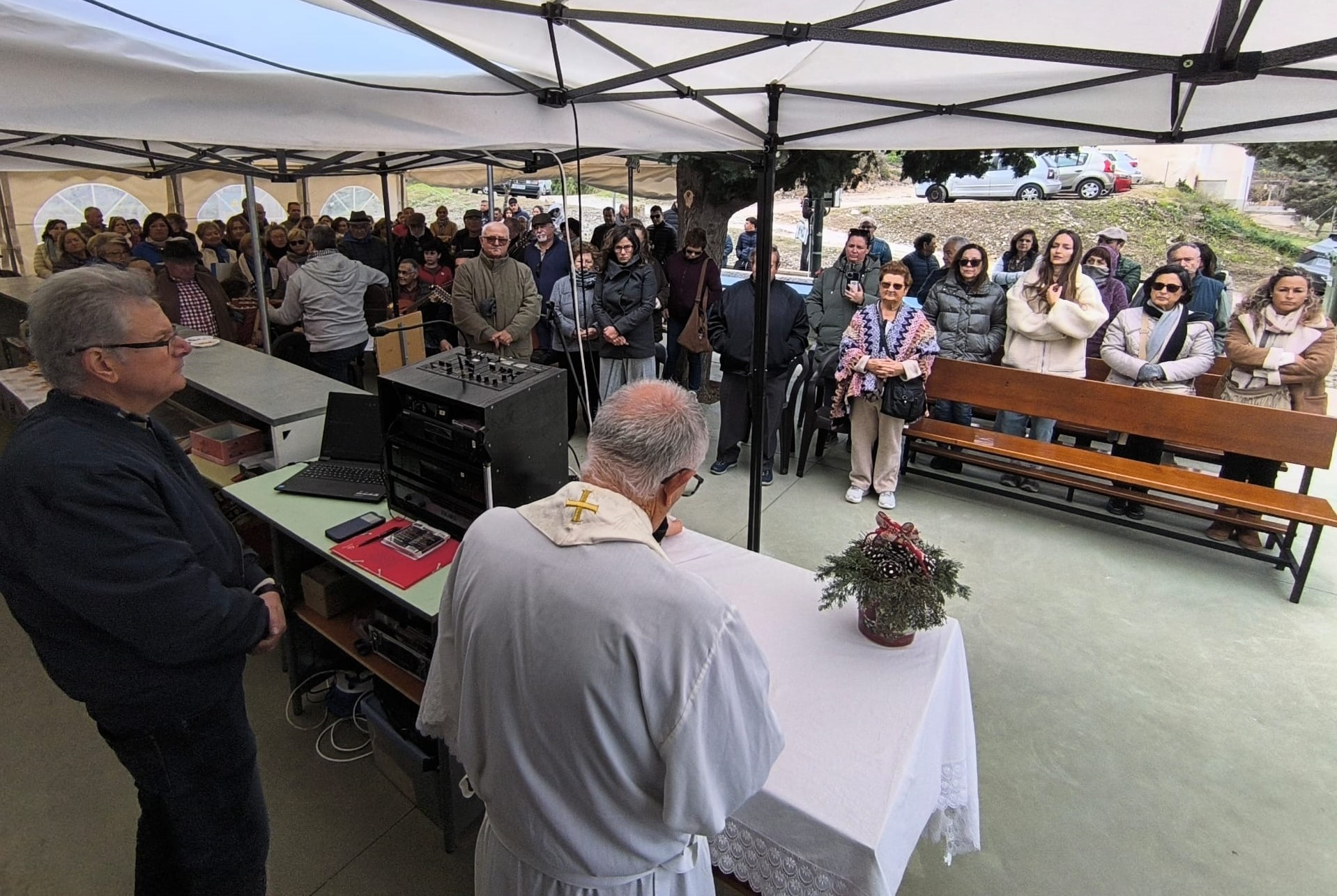 A las una y media del mediodía el sacerdote Andrés Vera, párroco de Alumbres y Portmán, celebró la Santa Misa de campaña. En su homilía, destacó que «lo mejor de este lugar son todas las gentes que dejan su huella y alegría en El Cañar. Ahora nos estamos preparando para otra gran alegría que ocurrirá dentro de muy poco: la venida del Señor que va nacer de la Virgen de la Luz». La Eucaristía fue cantada por la Rondalla ‘Virgen del Carmen’ de Isla Plana.