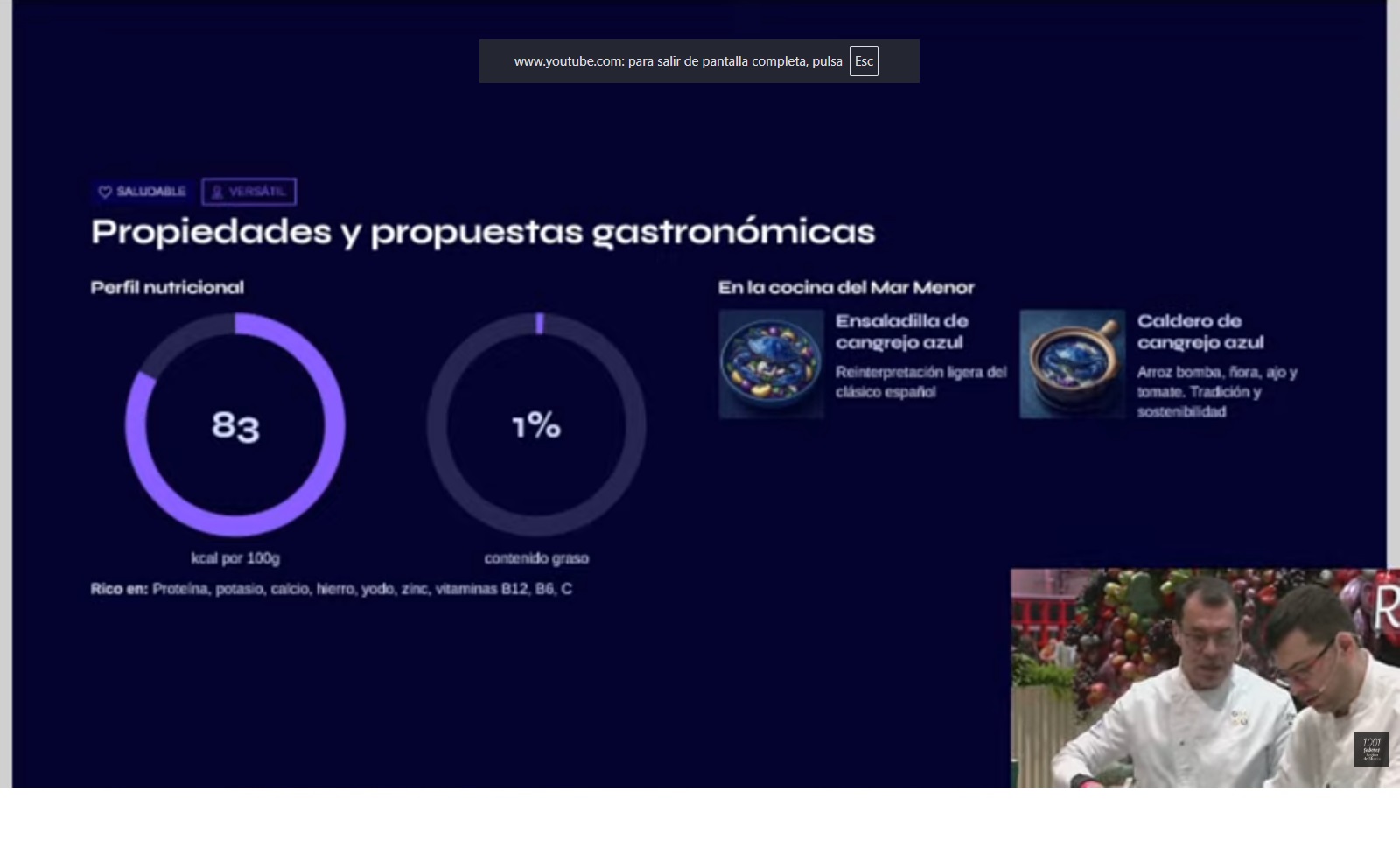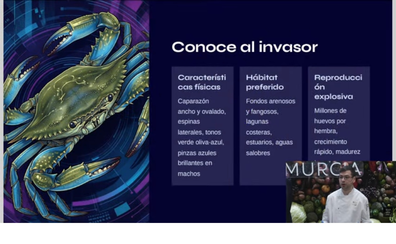 Javier Cadario y Antonio Reyes reivindican en Madrid Fusión, de la mano de ‘1001 Sabores Región de Murcia’, el potencial gastronómico y sostenible del cangrejo azul con una propuesta creativa y muy murciana