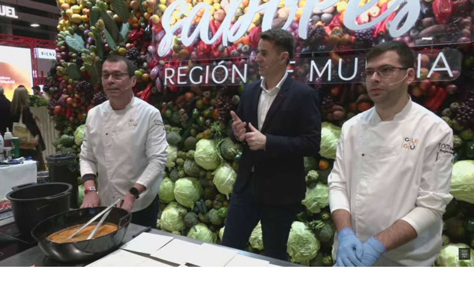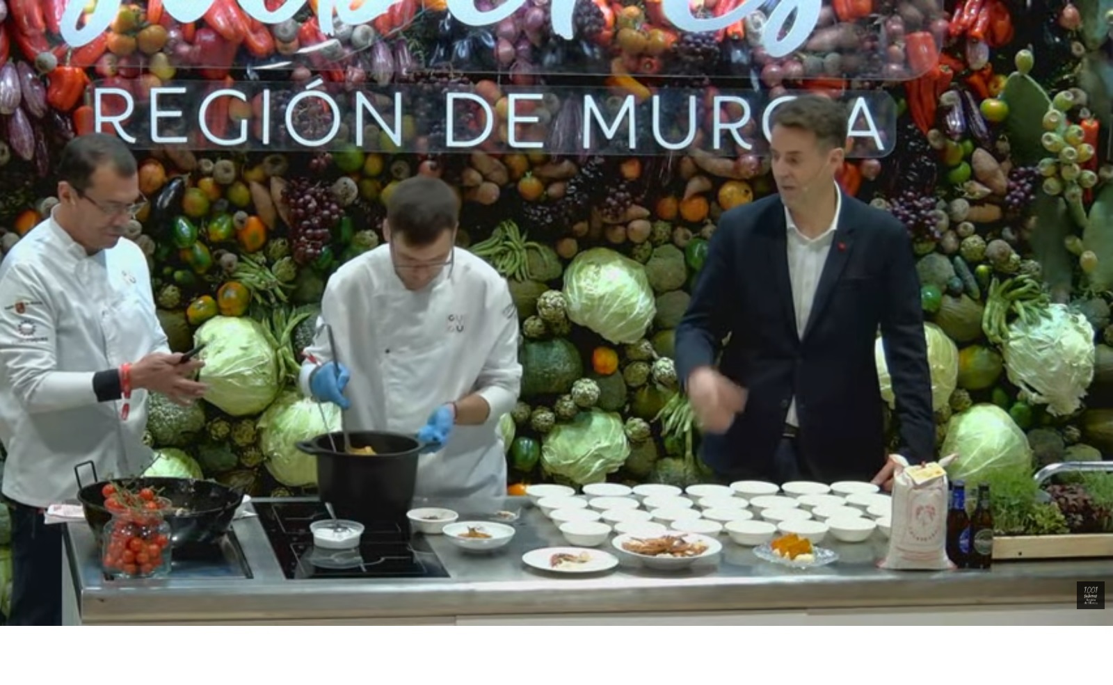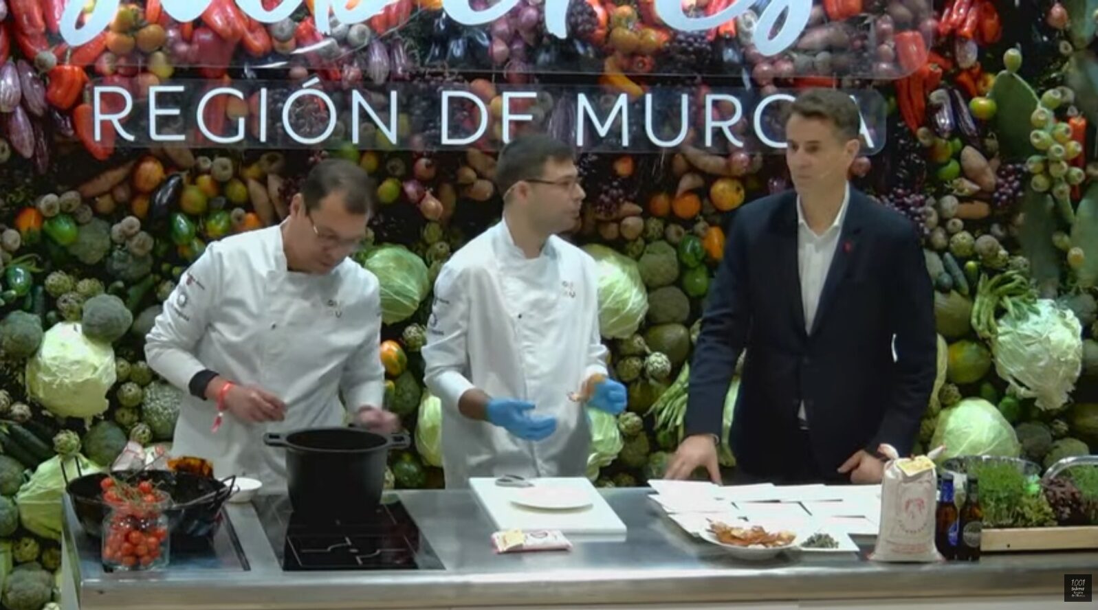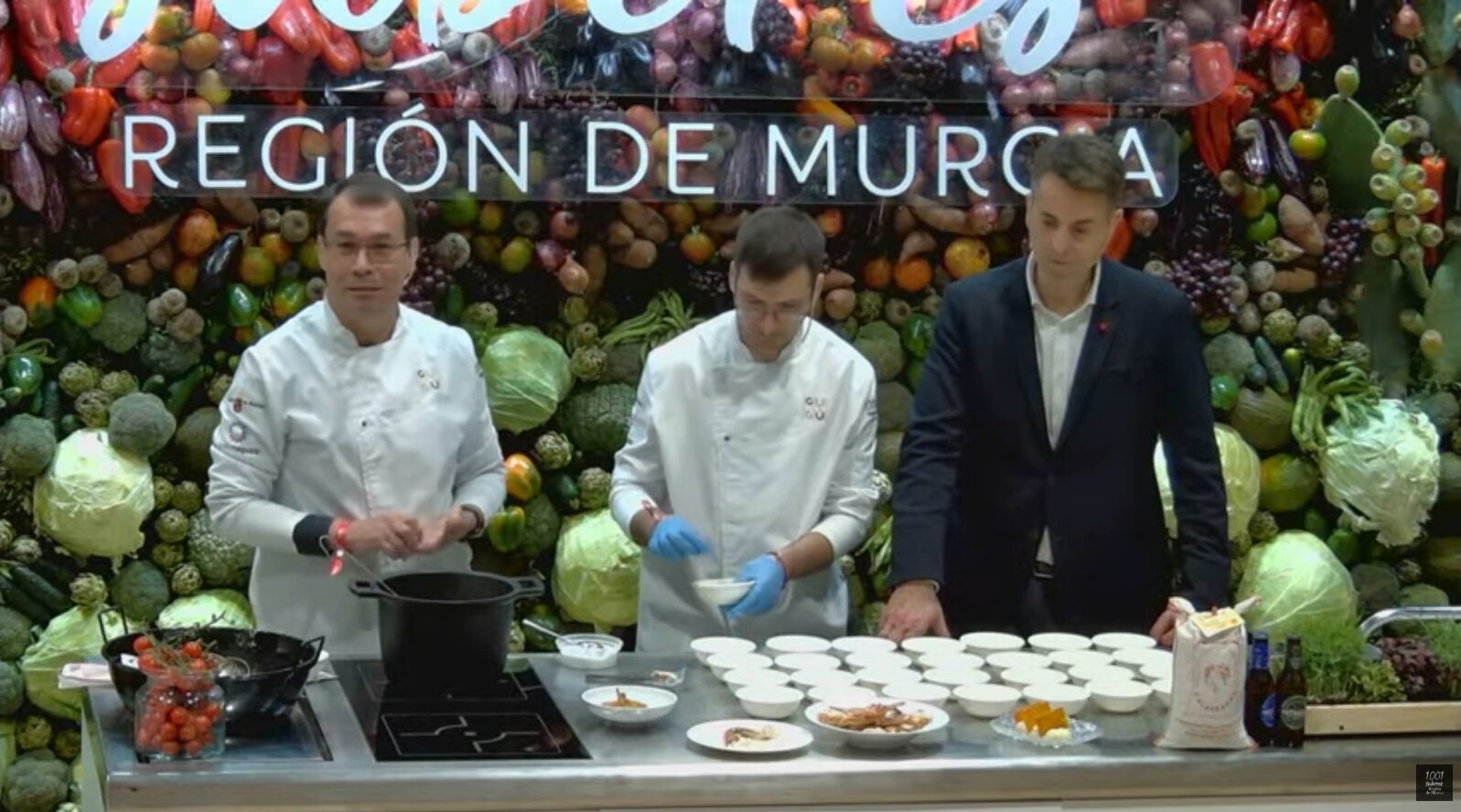 Integrados en el stand institucional ‘Los 1.001 Sabores de la Región de Murcia’, promovido por el Instituto de Turismo regional, los cocineros elaboraron en directo un caldero del Mar Menor con cangrejo azul como ingrediente estrella. Lejos de tratarse de una mera demostración técnica, la intervención se convirtió en un relato culinario sobre la transformación de un problema ecológico en una oportunidad gastronómica y económica.