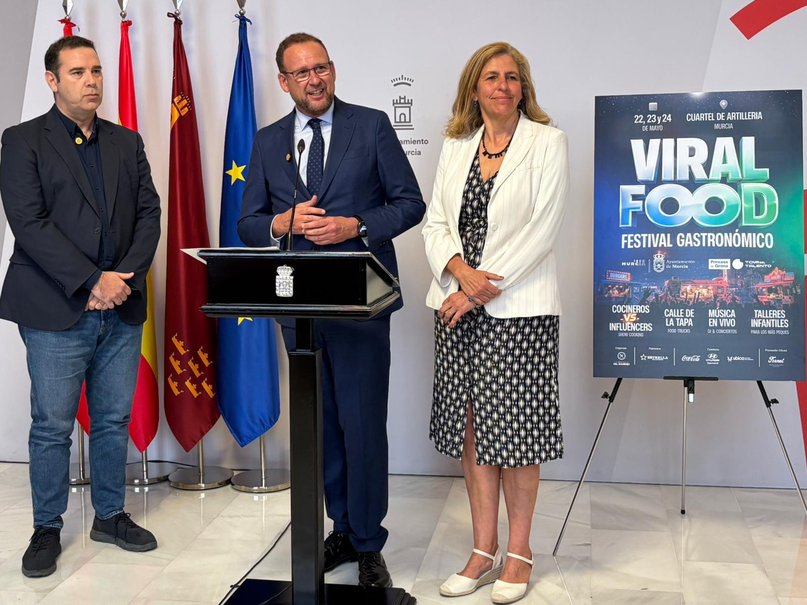 Del 24 al 26 de mayo, el Cuartel de Artillería será el escenario de ‘Viral Food‘, un evento que traslada el éxito de las recetas de las redes sociales a la cocina en directo. El concejal de Desarrollo Urbano y Ciudad Inteligente, José Guillén y la concejal de Gobierno Abierto, Promoción Económica y Empleo, Mercedes Bernabé, han presentado esta mañana los detalles de esta cita que busca dar visibilidad nacional a la despensa murciana.