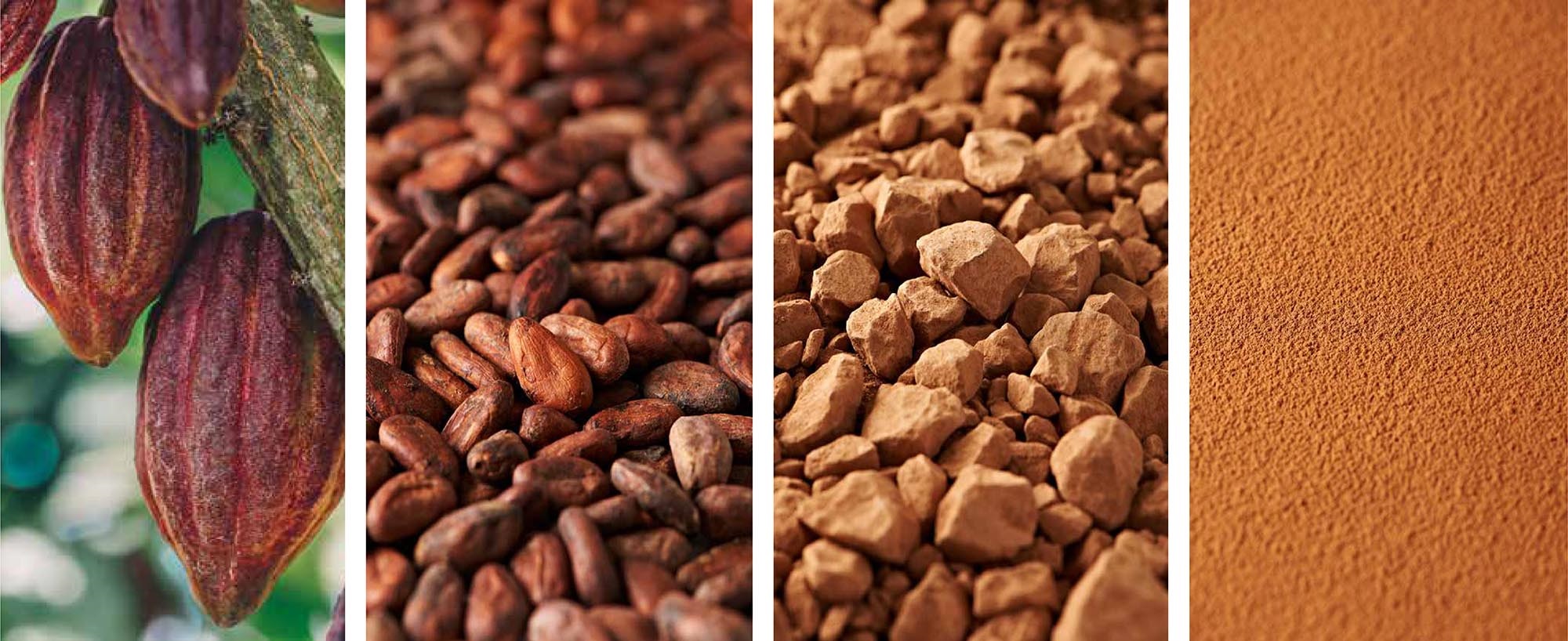 El fruto del cacao, conocido como mazorca, contiene entre 30 y 40 semillas envueltas en una pulpa blanca y dulce. Tras su recolección, las semillas pasan por procesos de fermentación, secado, tostado, descascarillado y desgrasado, dando lugar a productos como el cacao en polvo, la manteca de cacao o el chocolate.