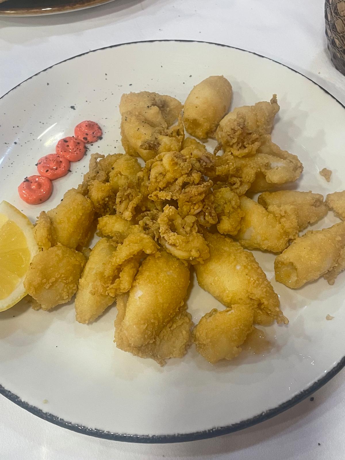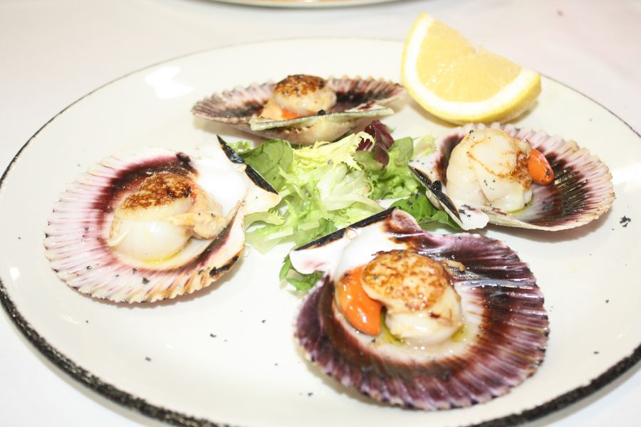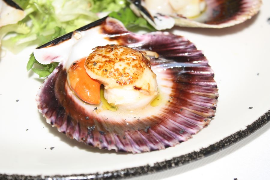 La propuesta gastronómica de Puerta de Murcia se construye desde la huerta, el mercado y las raíces. Y la noche de la visita de LasGastrocronicas.com lo demostró con una sucesión de platos que son pura esencia mediterránea. El pulpo roquero a la brasa abrió el desfile: tierno, ahumado en su justa medida, con ese punto de sal que evoca las costas murcianas. Le siguieron las vieiras a la plancha, jugosas y delicadas, y los chipirones a la andaluza rebozados en harina de garbanzos, crujientes por fuera y suaves por dentro, un homenaje a la fritura bien entendida.