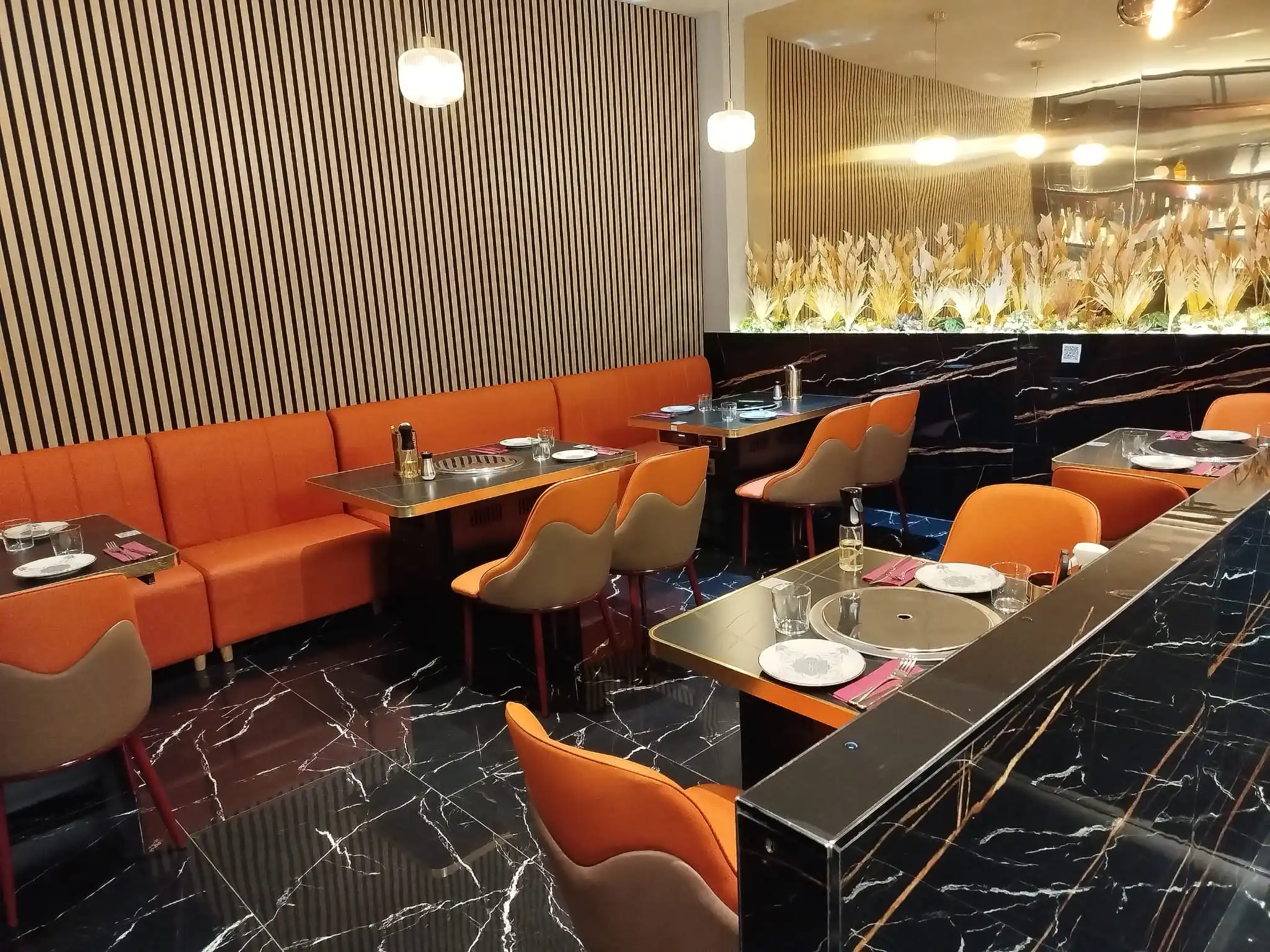 La esencia de este formato, denominado Korean BBQ, trasciende la mera preparación de alimentos para convertirse en una ceremonia social. En su país de origen, reunirse alrededor del calor de la parrilla equivale a festejar la convivencia. Esta filosofía se ha importado a la capital cartagenera con rigor: cada unidad de comedor cuenta con un sistema de cocción incrustado en el centro. De este modo, se elimina la barrera de la cocina tradicional, permitiendo que sea el comensal quien regule la intensidad del fuego y el grado de cocción de los ingredientes frescos.